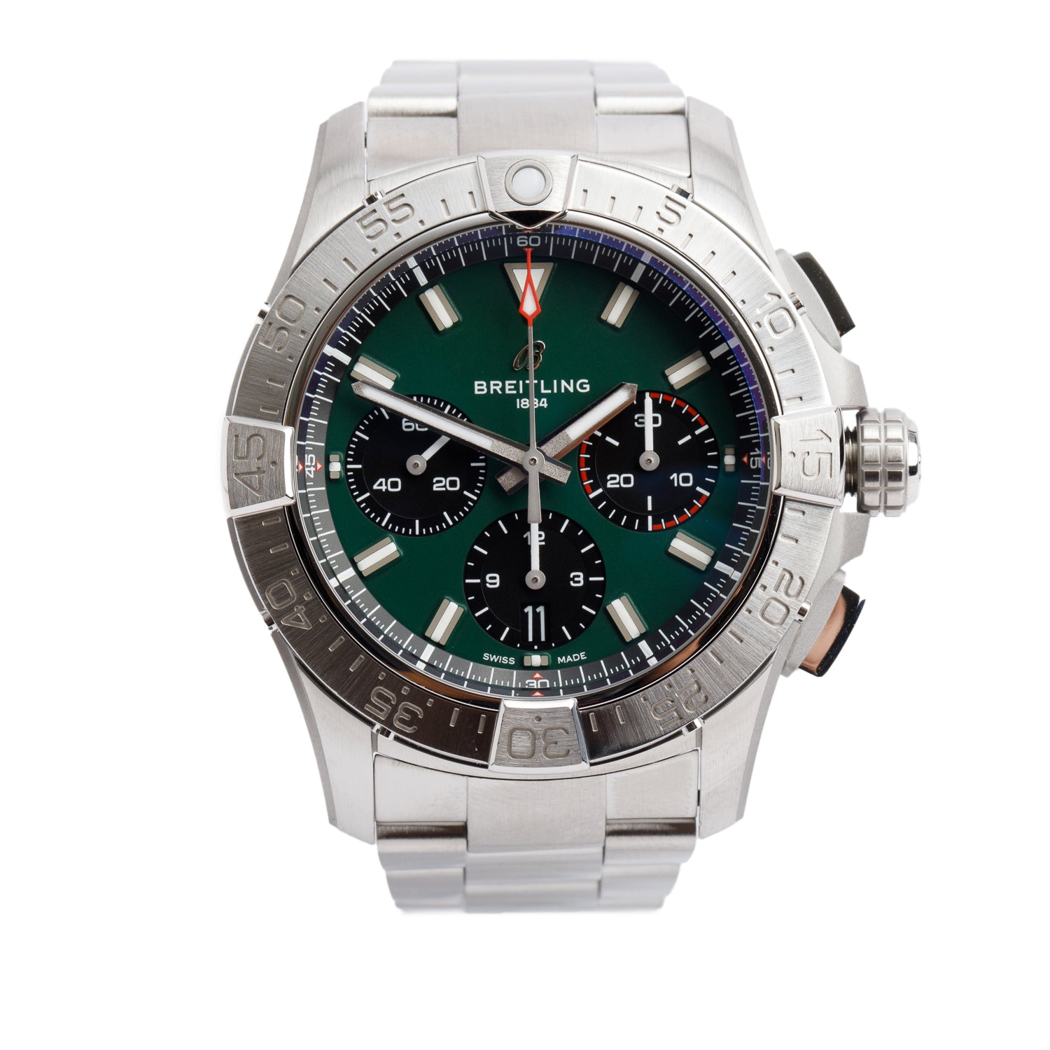 Stainless Steel Avenger B01 42 MM Chronograph Automatic Watch Green Dial AB0146 w/ Box & Papers