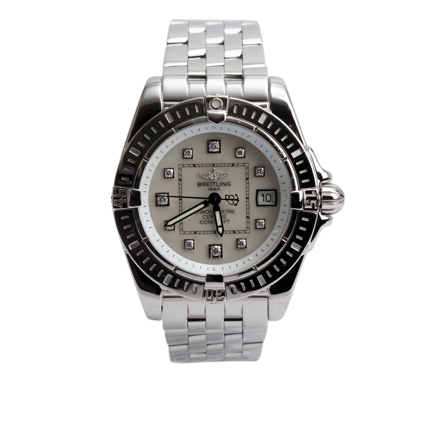 Stainless Steel Galactic 32 MM Quartz Watch Mother of Pearl Diamond Dial A71356 w/ Box & Papers