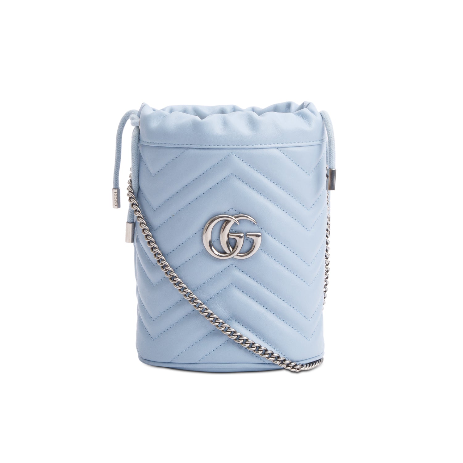 Blue Calfskin Leather GG Marmont Mini Bucket Bag