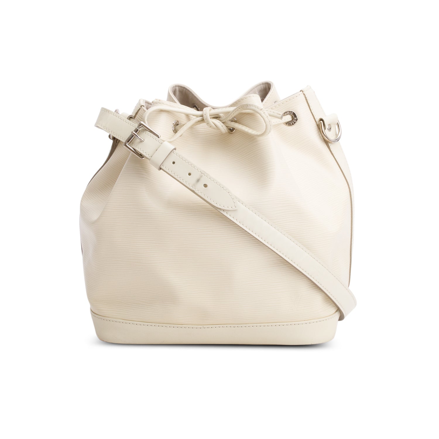 2022 White Leather Mini Cut Out Bucket Bag w/ Strap