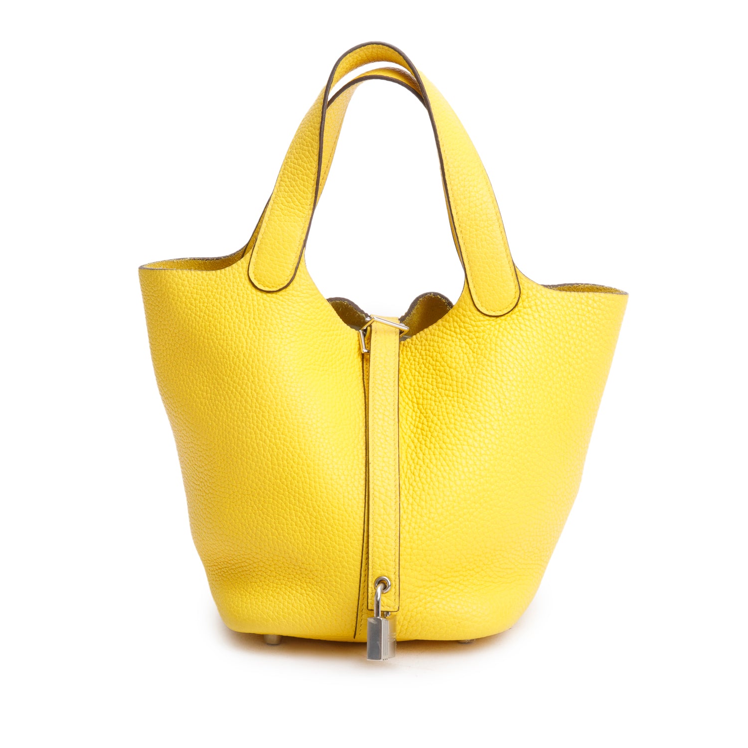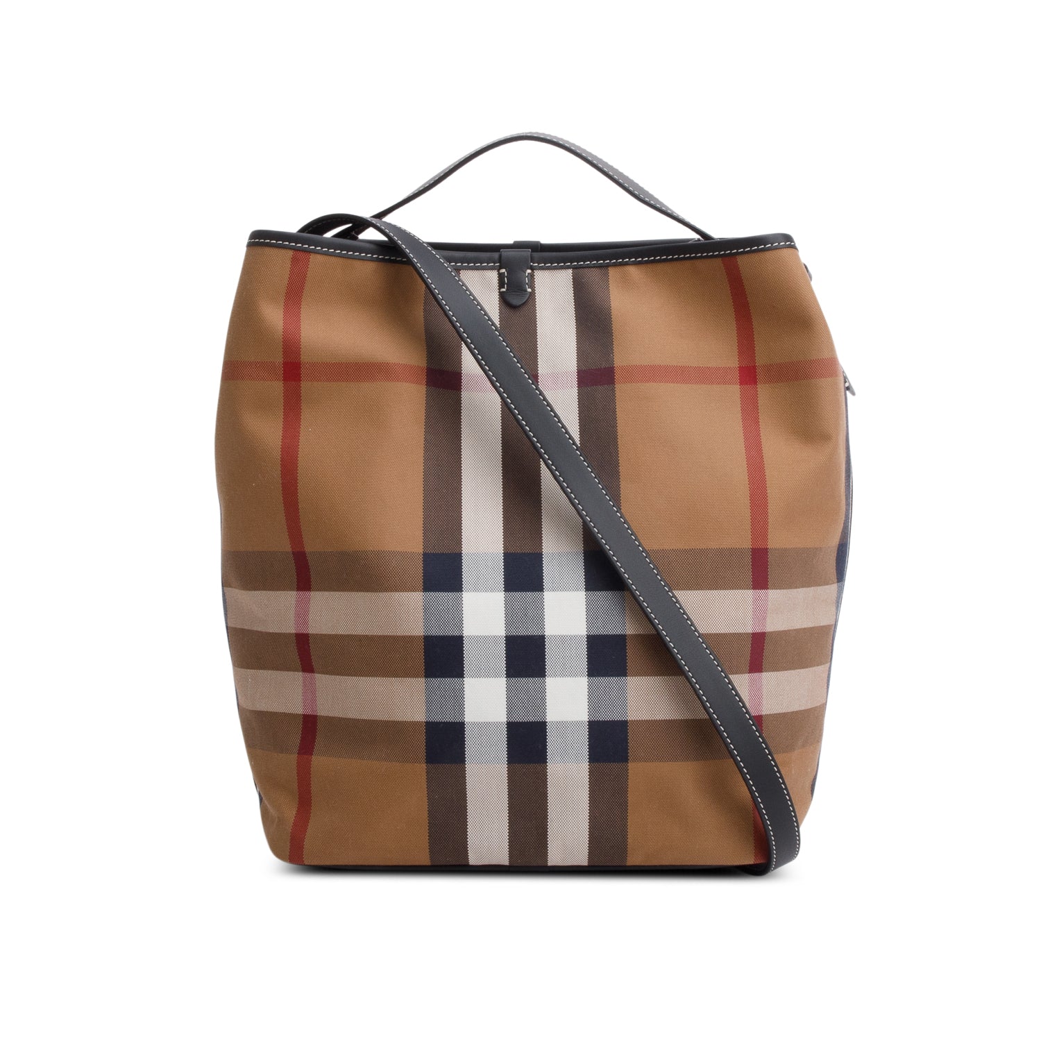 2022 Neutral Canvas Brown Leather Logo Teen 16 Bucket Bag w/ Strap