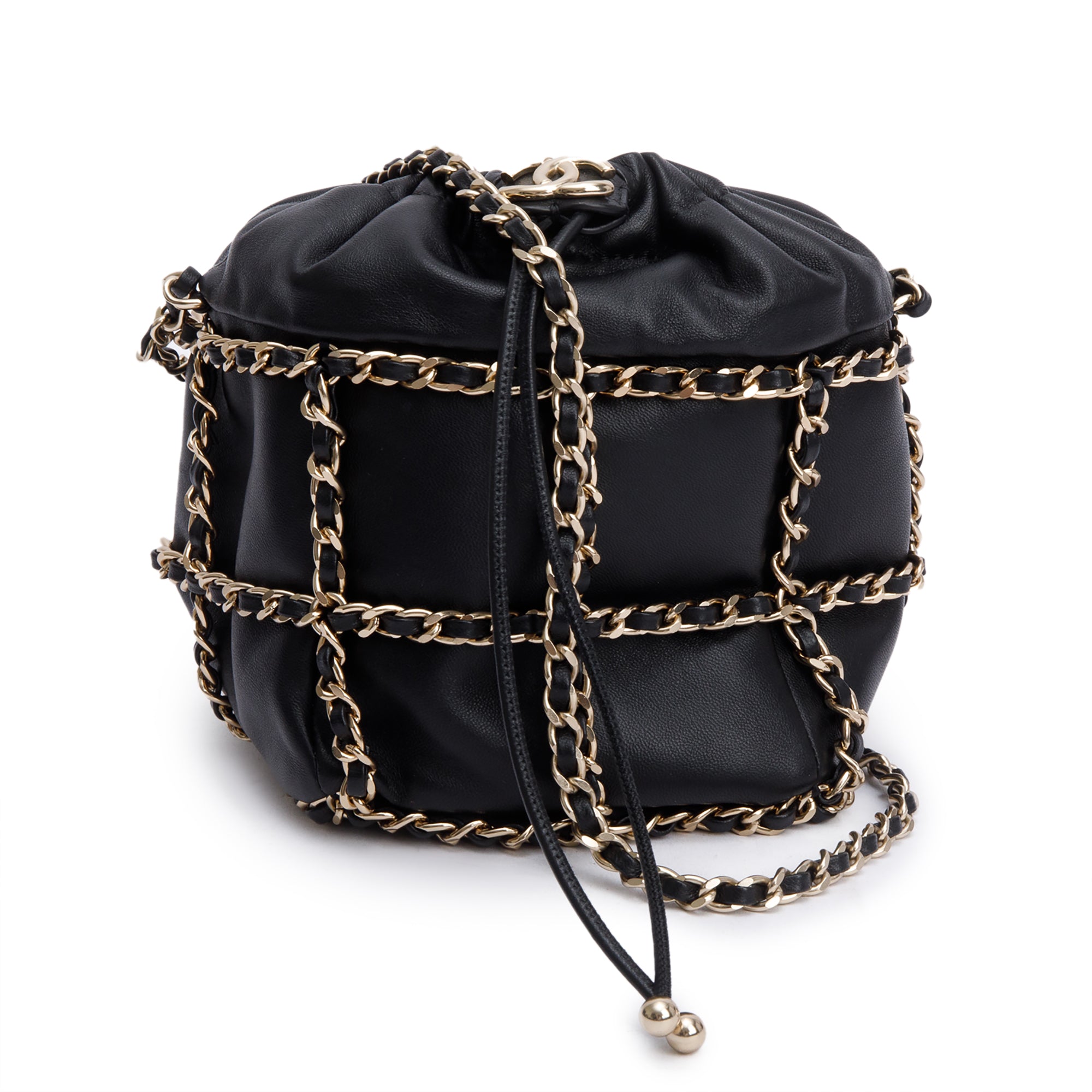 Black Perforated Calfskin See Through Bucket Bag w/ Pouch