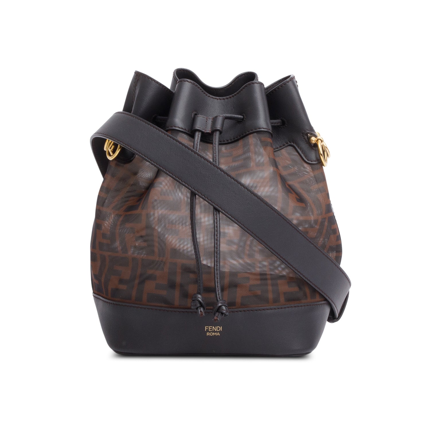 Brown Zucca FF Mesh Calfskin Leather Small Mon Tresor Bucket Bag w/ Strap