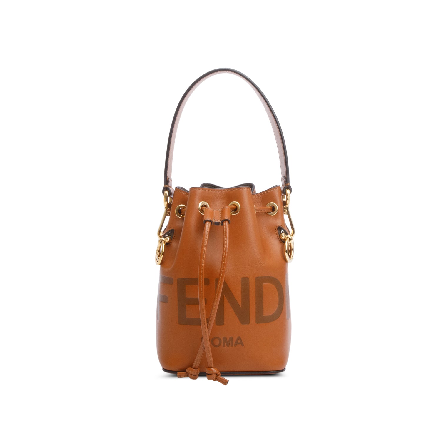 Brown Vitello Liberty FF 1974 Embossed Small Mon Tresor Bucket Bag w/ Strap