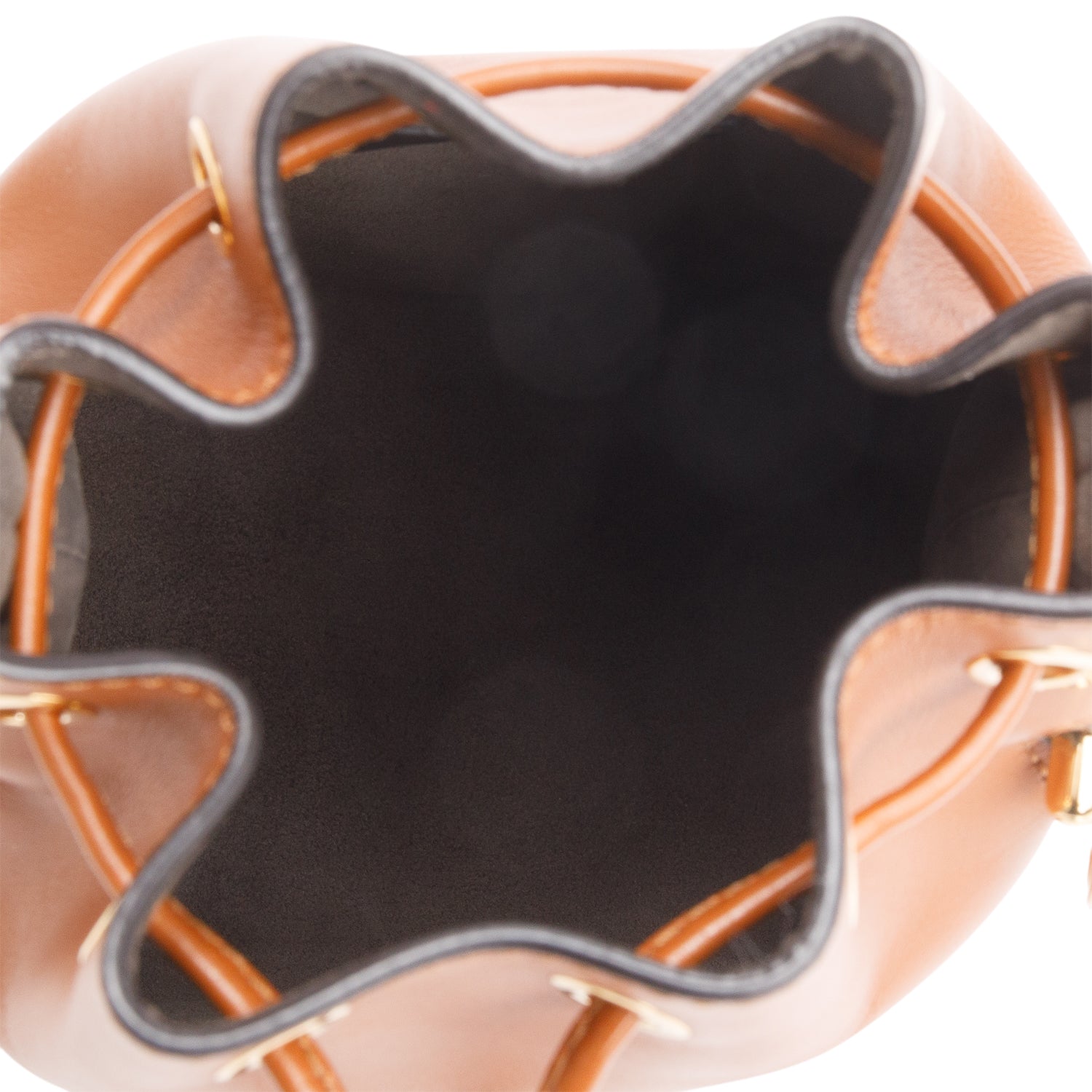 2021 Brown Vitello Logo Embossed Mini Mon Tresor Bucket Bag w/ Box & Receipt