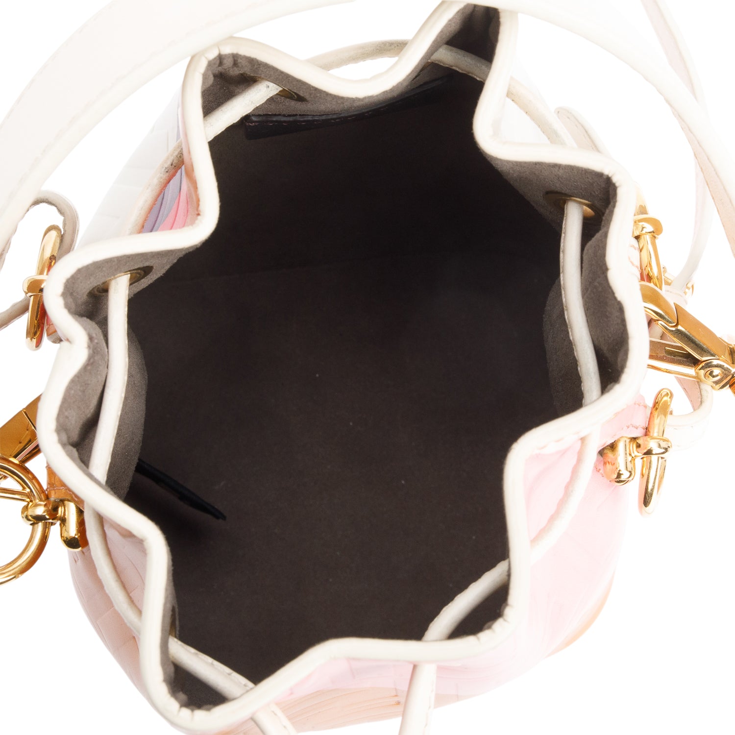 Multicolor FF Embossed Stripe Calfskin Leather Mini Mon Tresor Bucket Bag w/ Strap