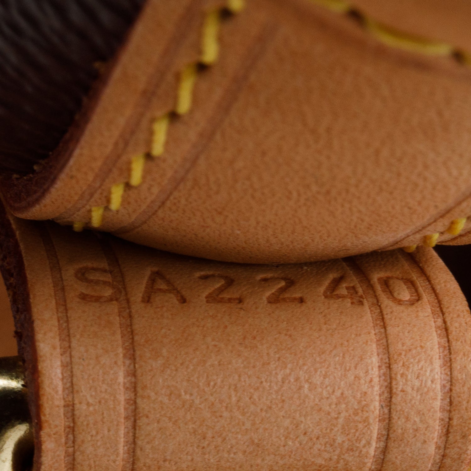 Condition: Very Good; slight discolouration and scratches at vachetta base; slight creasing at leather trim and strap; minor marks at interior.