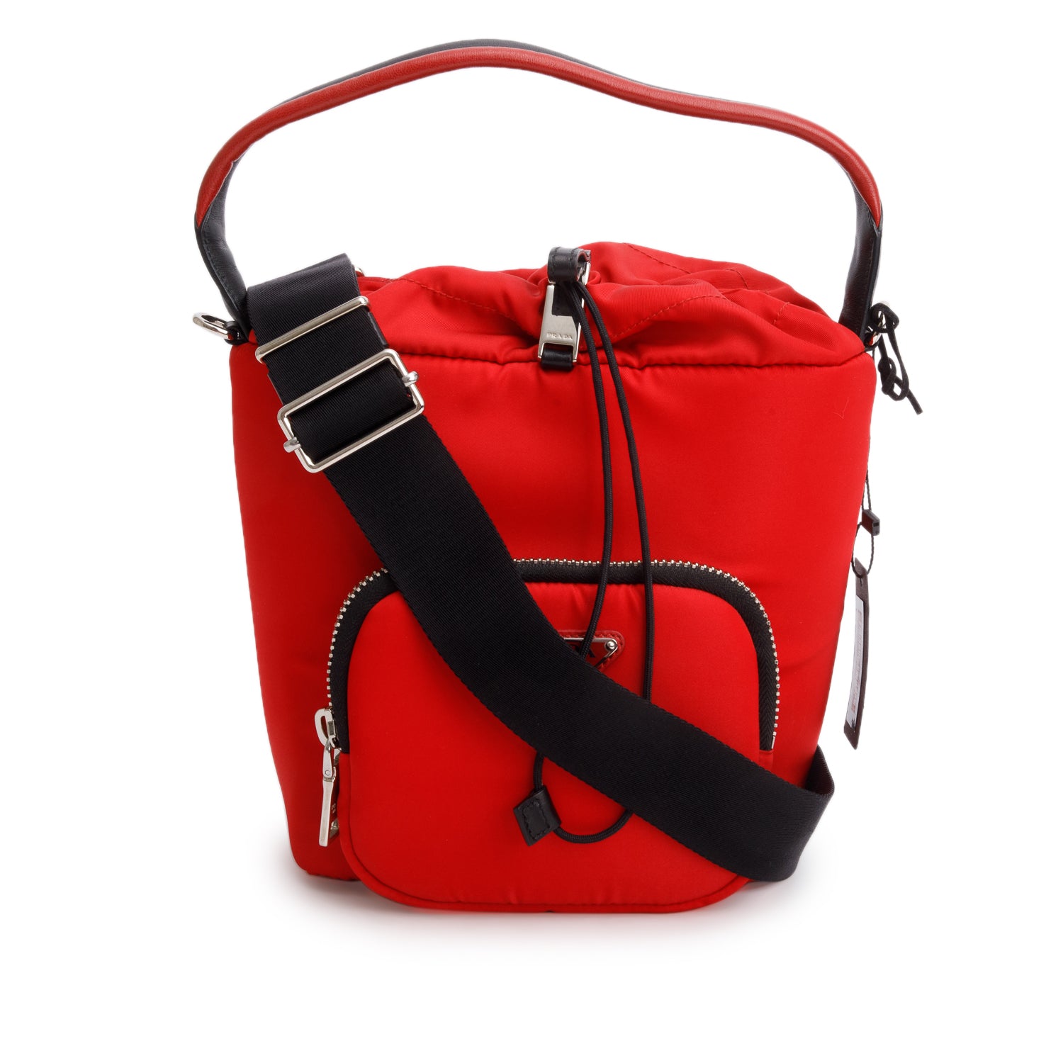 Red Tessuto Nylon Cargo Pocket Bucket Bag w/ Authenticity Card & Strap