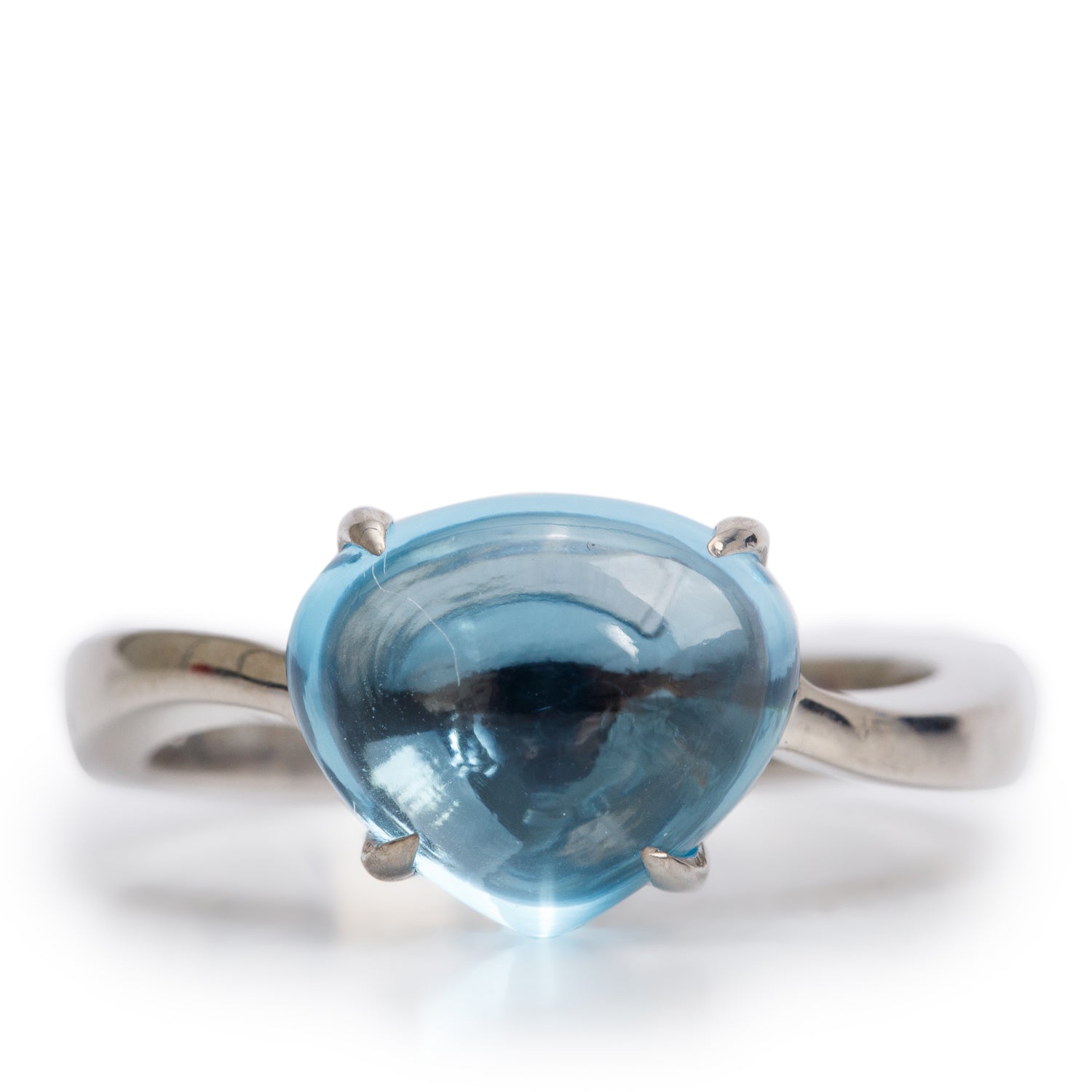 BVLGARI 18k White Gold Blue Topaz Sassi Mediterranean Eden Ring, Size 7 w/ Box