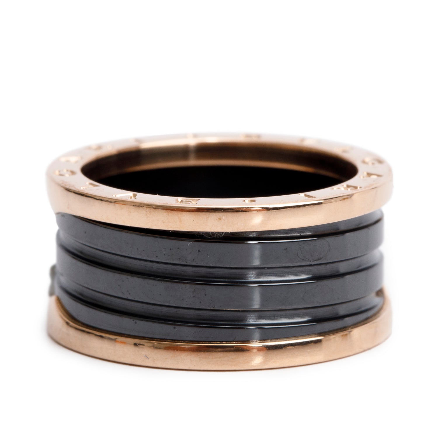 BVLGARI 18k Rose Gold & Black Ceramic B.Zero1 4-Band Ring, Size 63 10 w/ Box