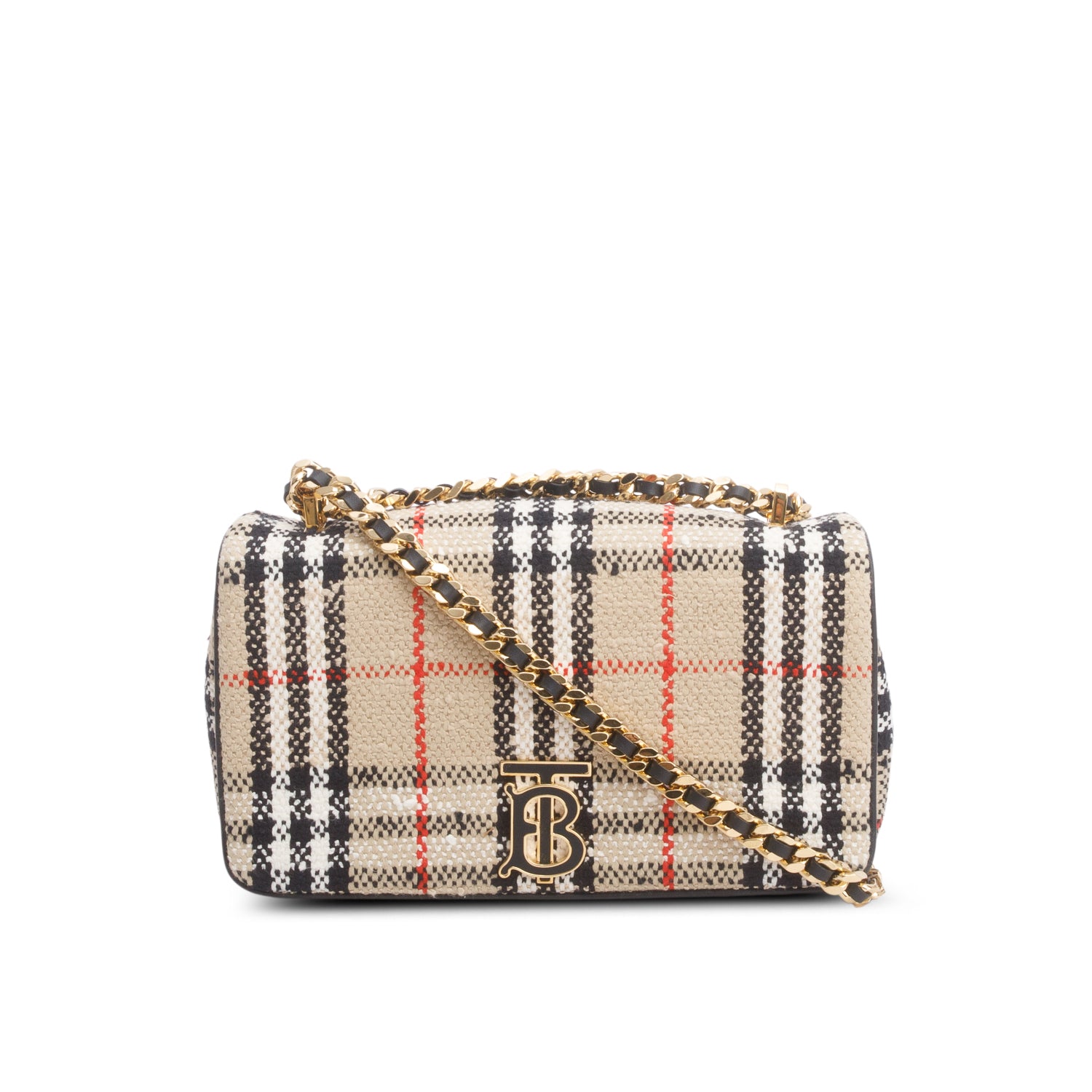 Beige Check Tweed Small Lola TB Shoulder Bag