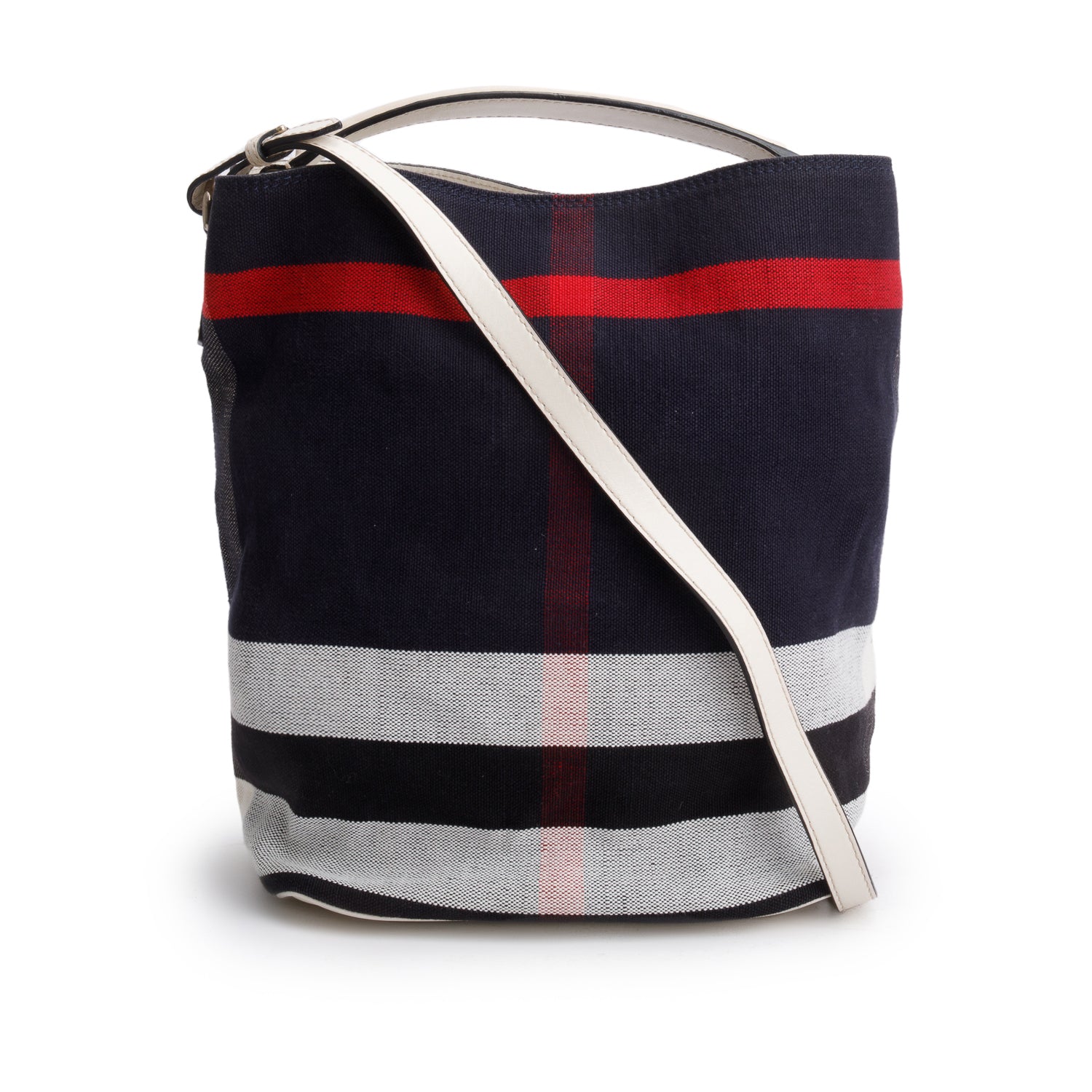 Navy Canvas Ashby Mega Check Bucket Bag w/ Pouch & Strap