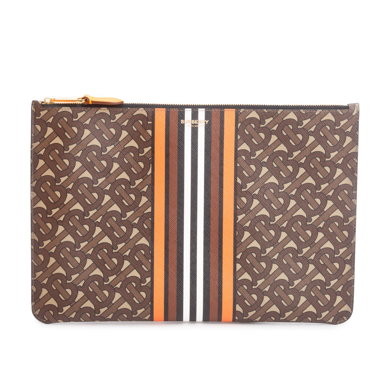 Brown/Orange Canvas TB Monogram Zip Pouch w/ Box