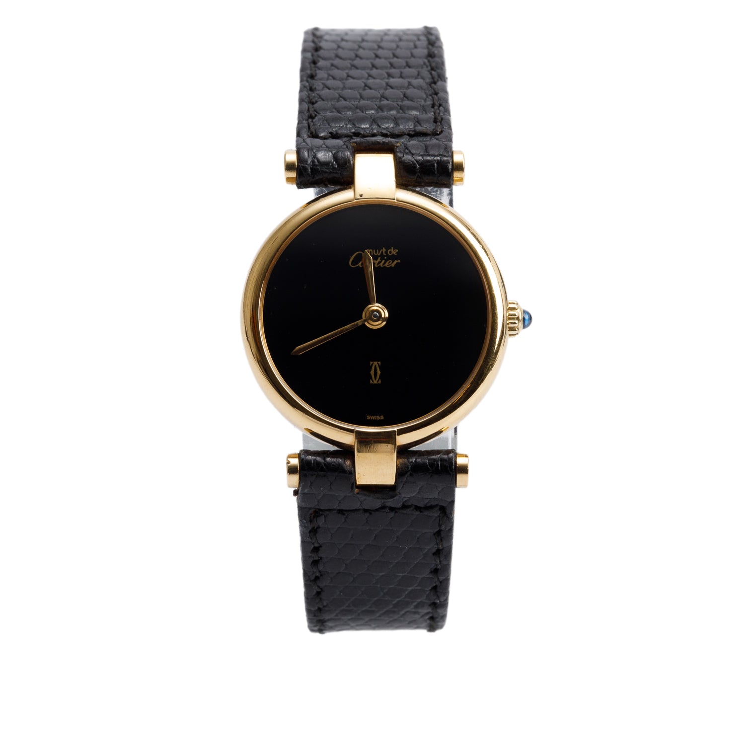 Vintage 18k Gold Vermeil Sterling Silver Argent Must Vendome Louis 24 MM Quartz Watch Black Dial w/ Papers
