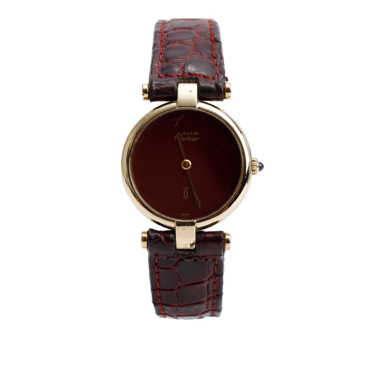 Vintage 18k Gold Vermeil Sterling Silver Argent Must De Vendome 24 MM Quartz Watch Burgundy Dial