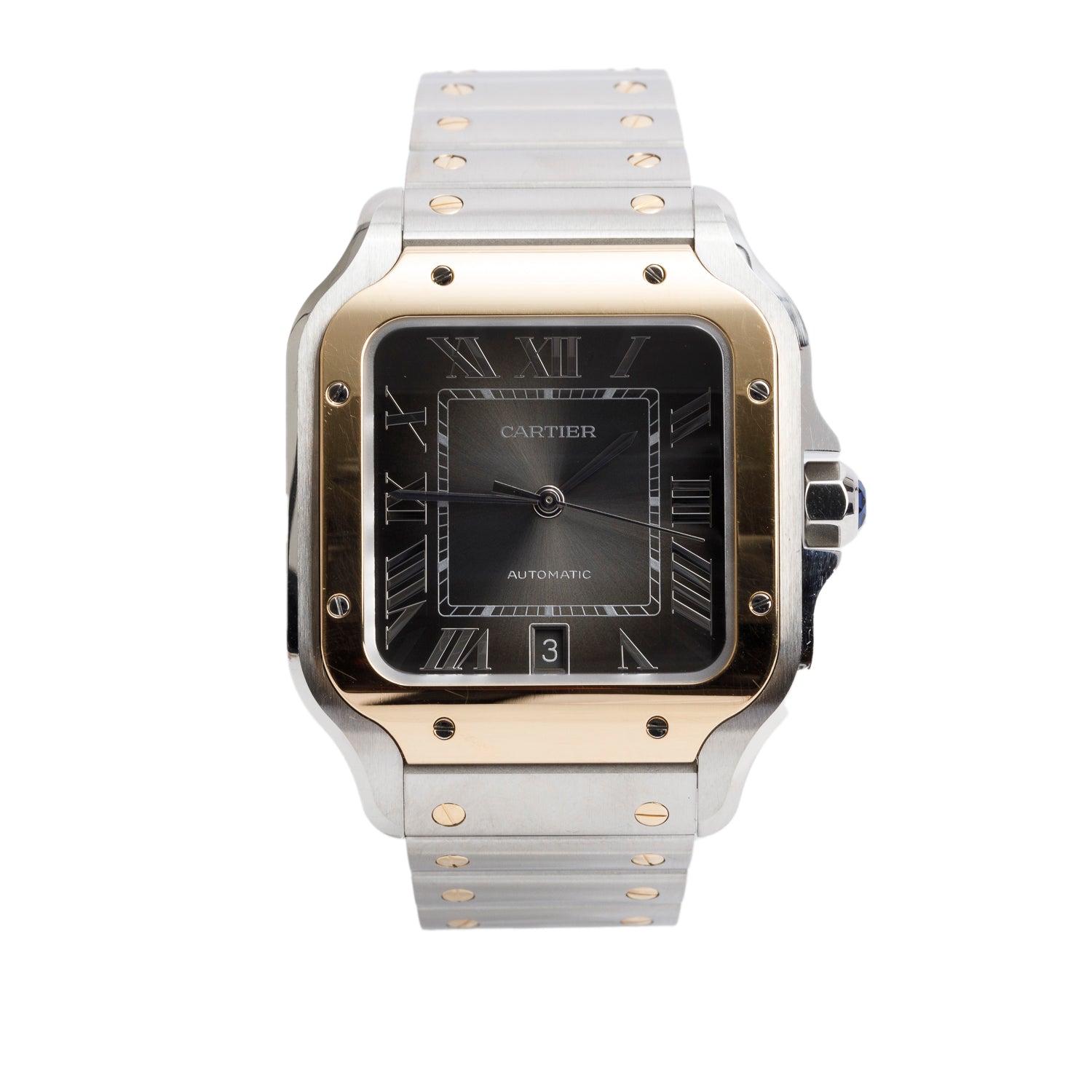2024 Stainless Steel & 18k Yellow Gold Santos de Automatic Watch, Large Model Anthracite Grey Dial 4072 w/ Box, Papers & Extra Strap