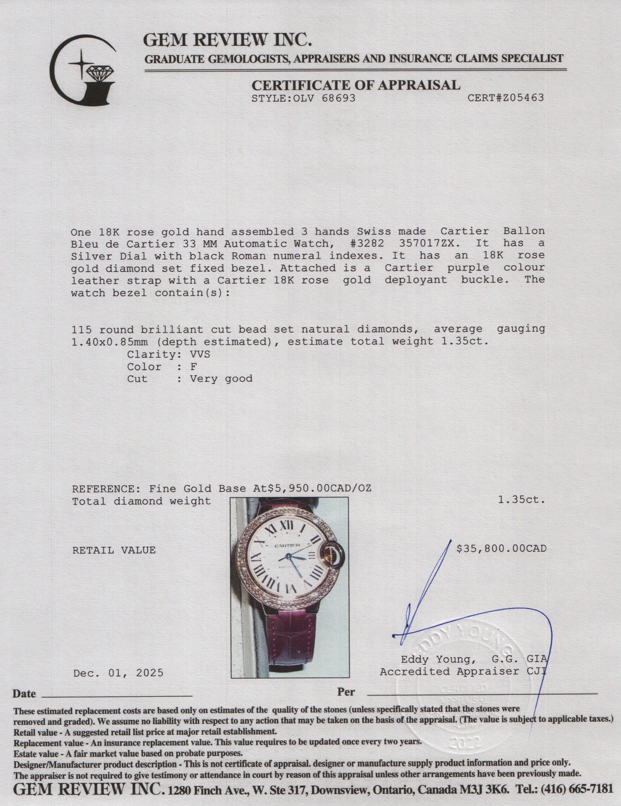 18k Rose Gold Diamond Bezel Ballon Bleu de 33 MM Automatic Watch Silver Dial 3282