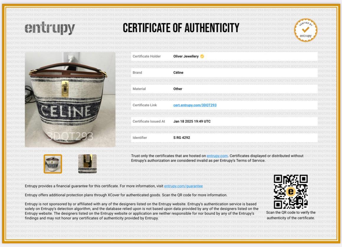 Dust Bag, Strap, Entrupy Certificate of Authenticity