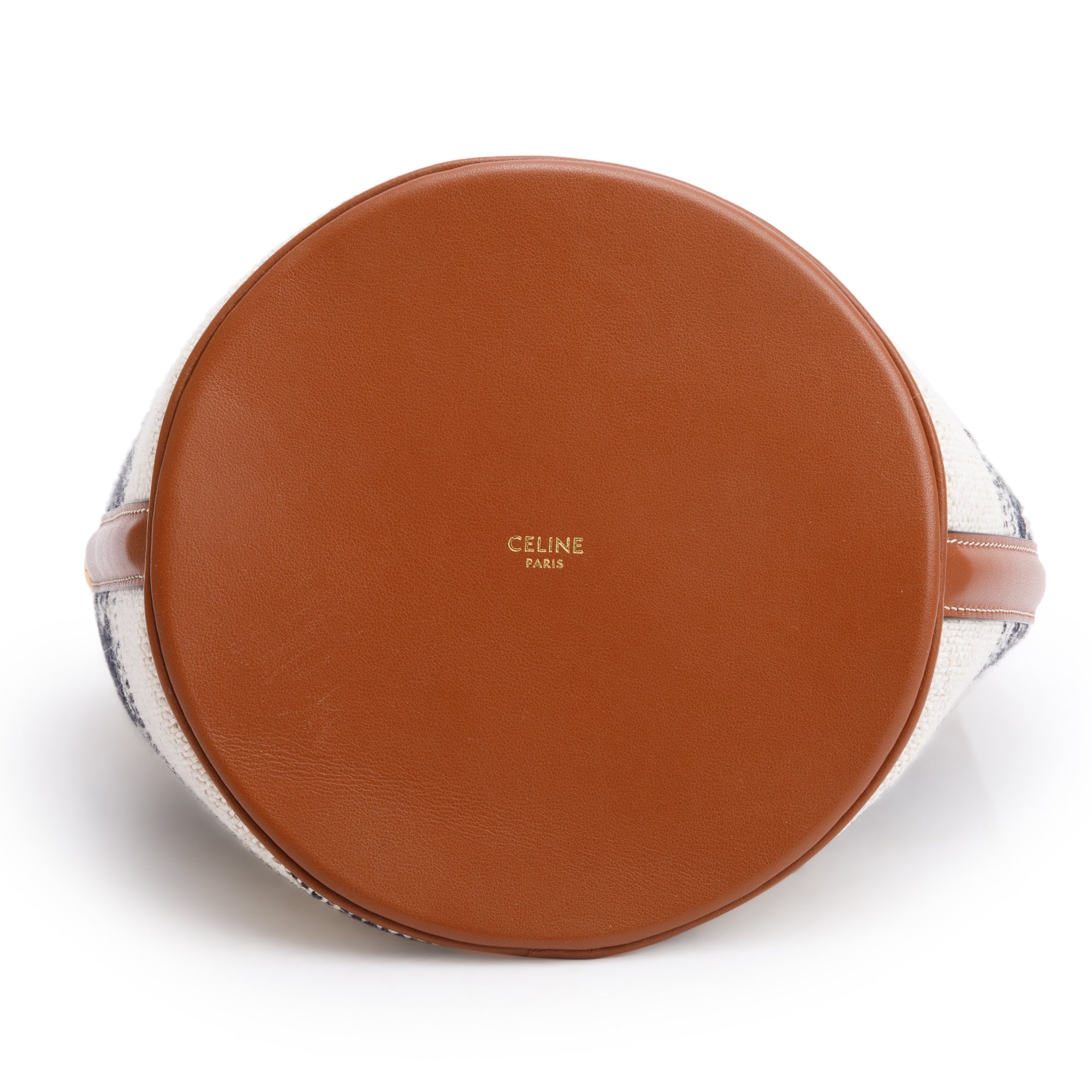 2022 Neutral Canvas Brown Leather Logo Teen 16 Bucket Bag w/ Strap