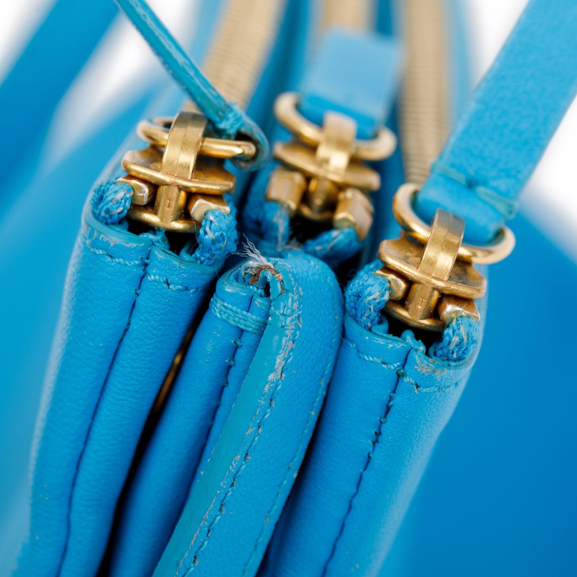 Blue Calfskin Leather Small Trio Crossbody Bag