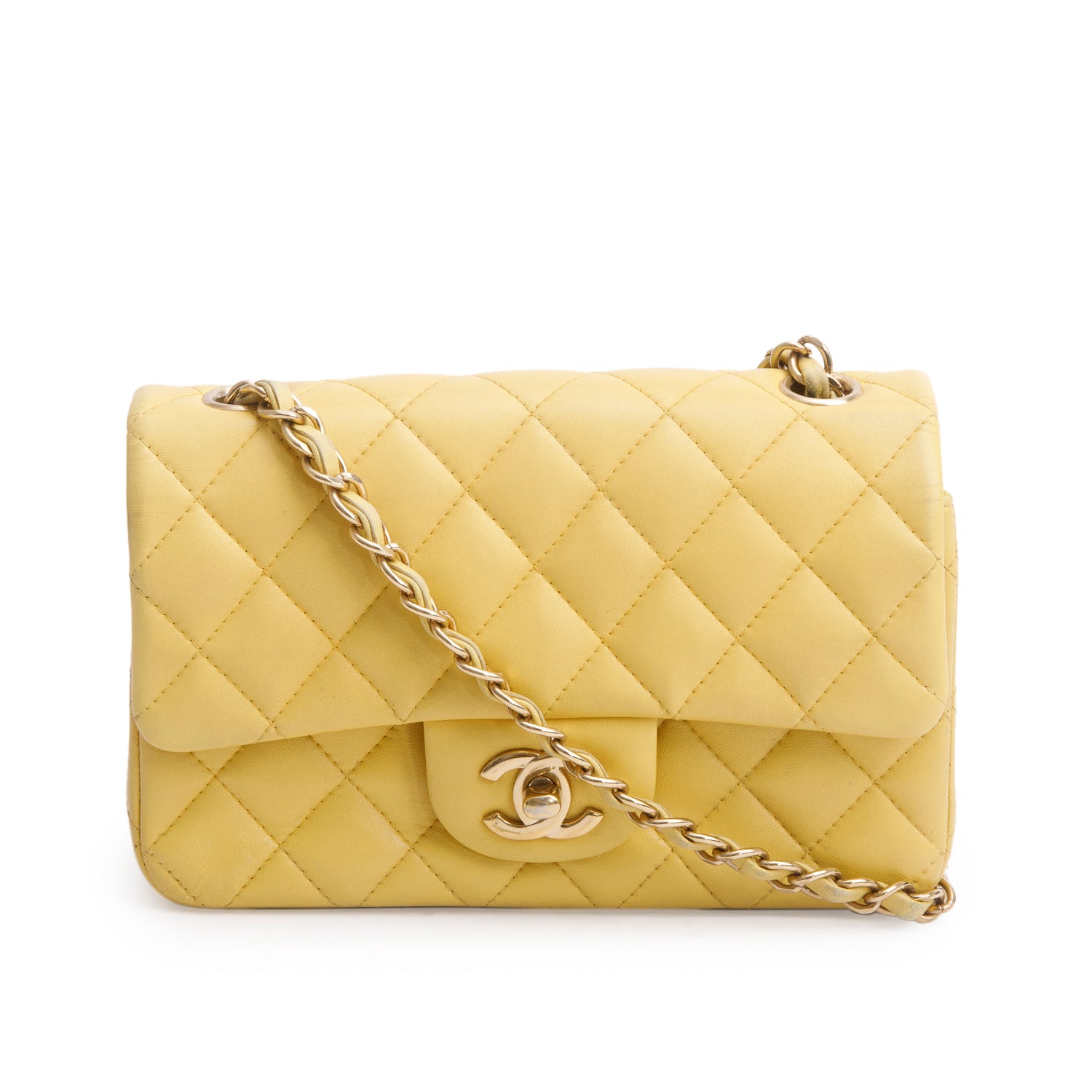 Yellow Quilted Lambskin Leather Classic Mini Rectangular Flap Bag