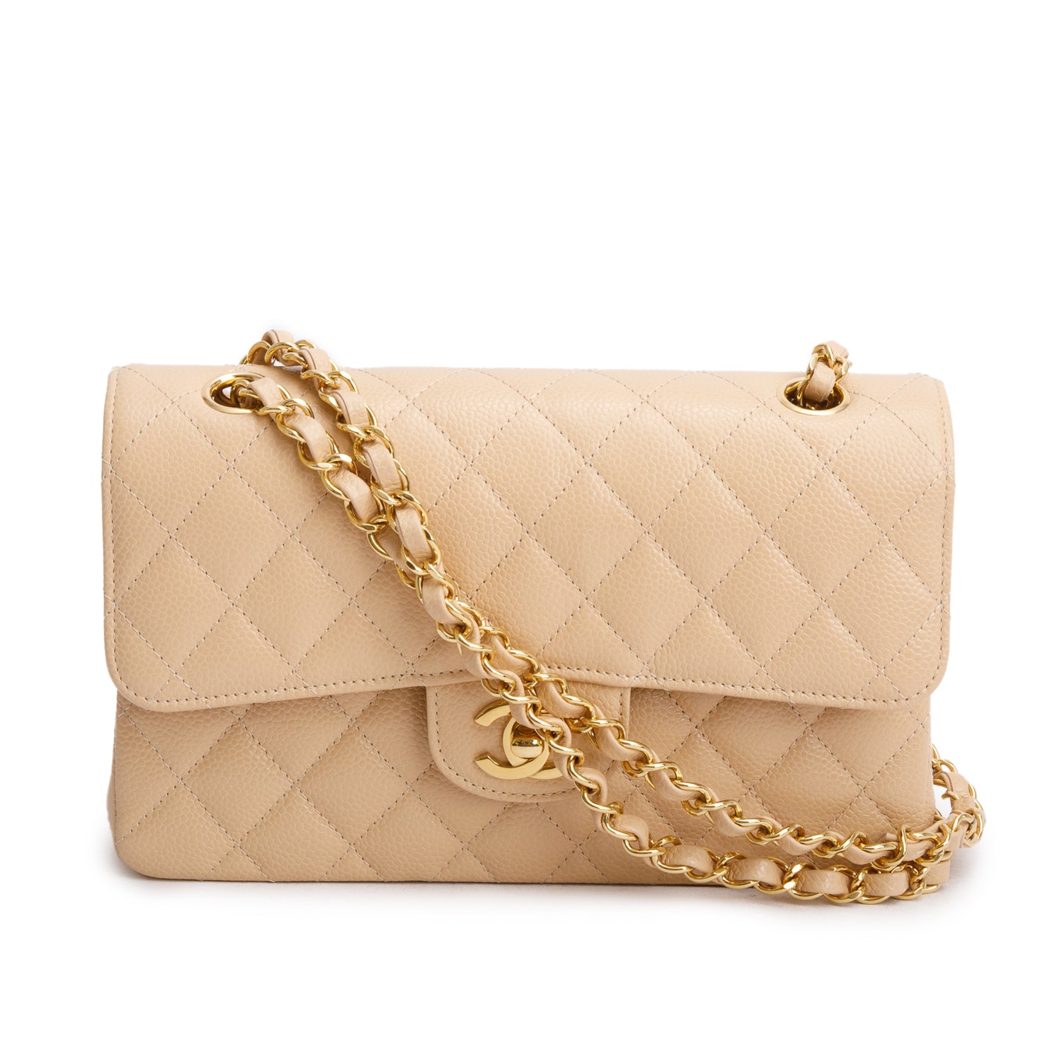 2025 Beige Caviar Quilted Small Double Flap Bag w/ Box & Receipt