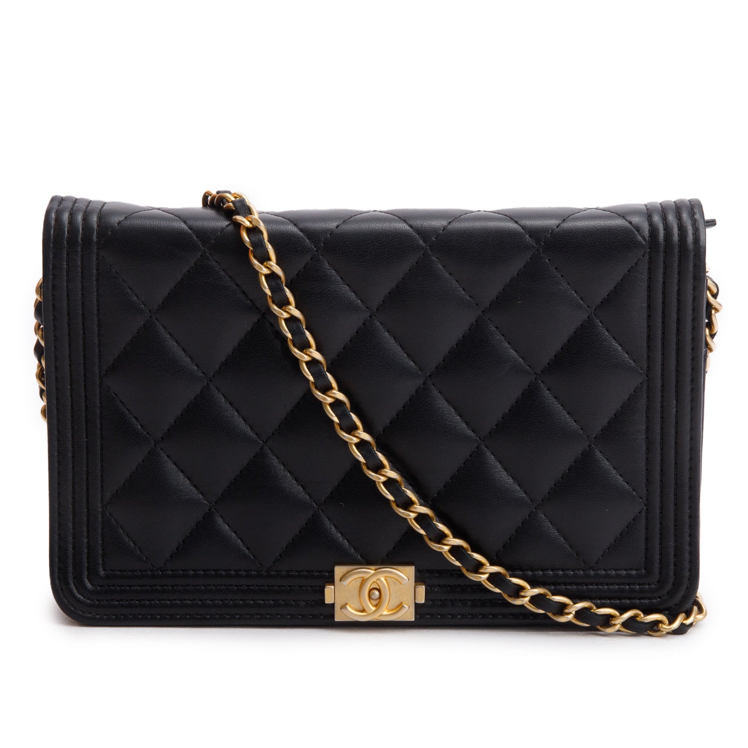 Black Quilted Velvet Boy Wallet on Chain w/ Box & Authenticity Card