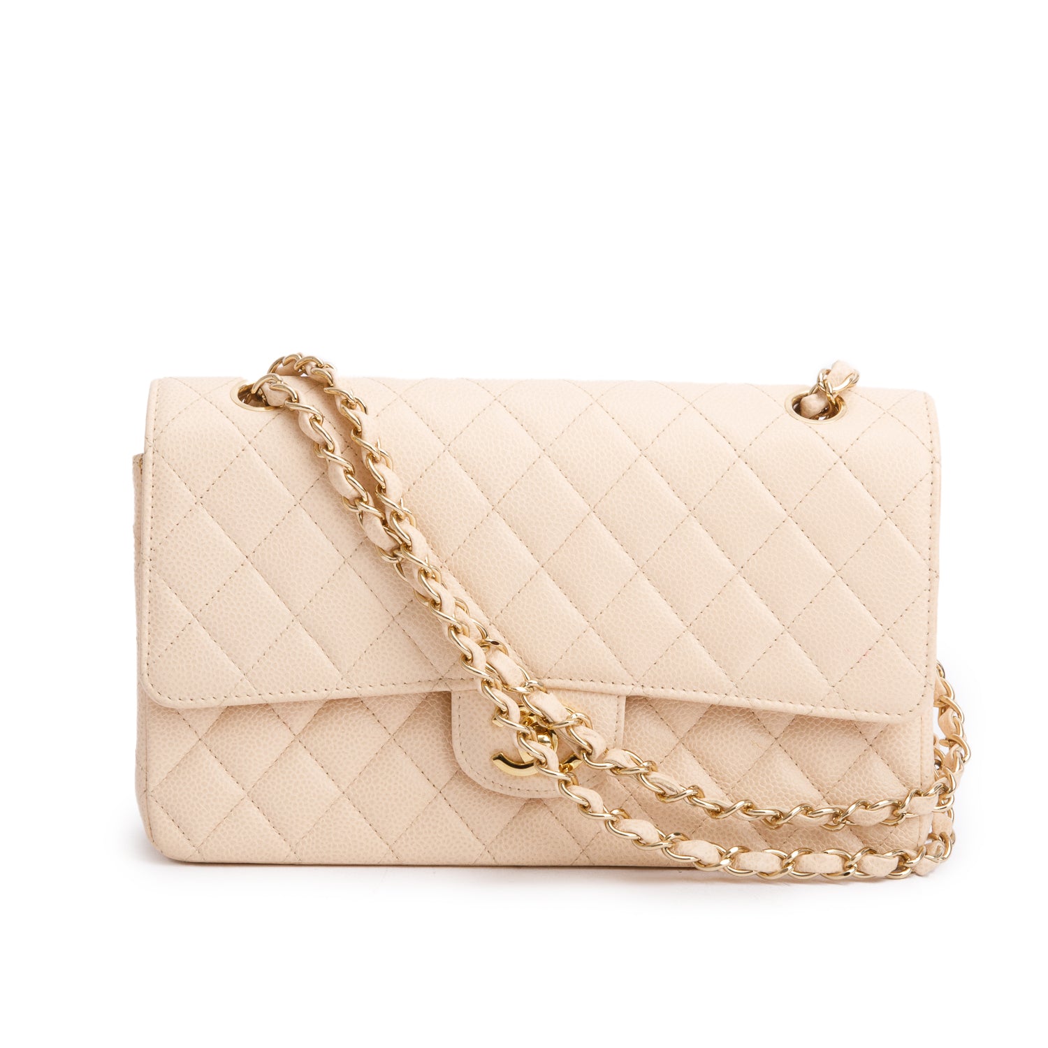 Beige Caviar Leather Classic Medium Double Flap w/ Authenticity Card