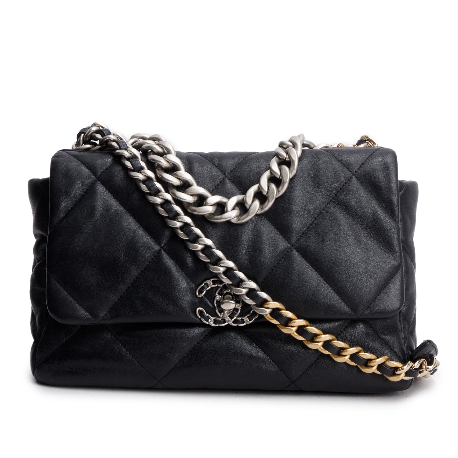 2022 Black Lambskin Quilted Large 19 Flap Bag w/ Receipt