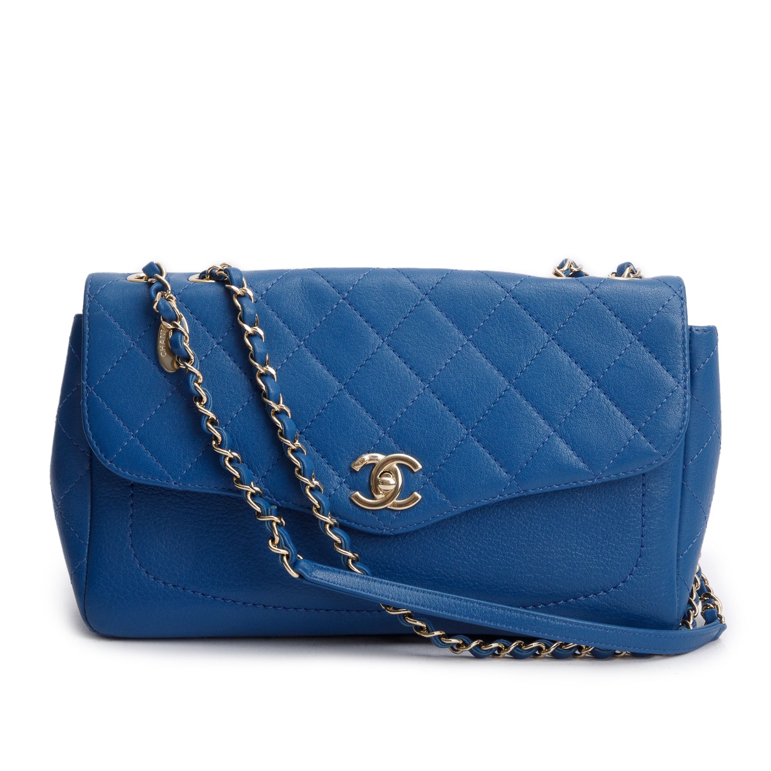 Blue Quilted Goatskin Coco Curve Flap Messenger Bag w/ Authenticity Card
