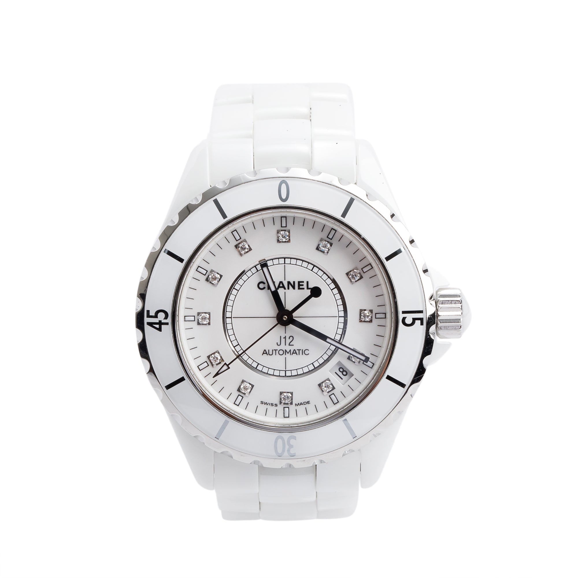 White Ceramic J12 38 MM Automatic Watch Diamond Dial w/ Box