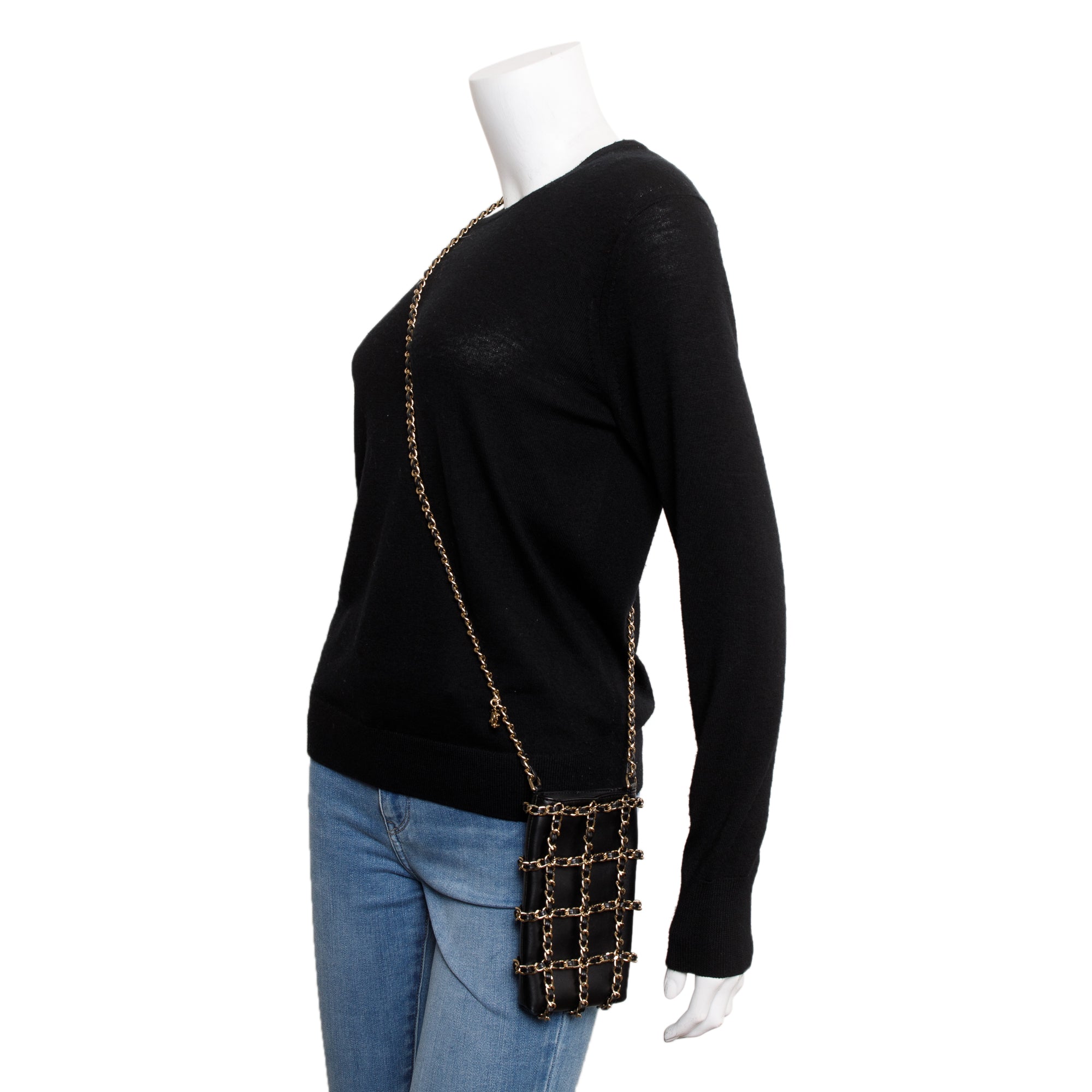 2020 Black Calfskin Leather Tech Me Out Clutch With Chain w/ Authenticity Card