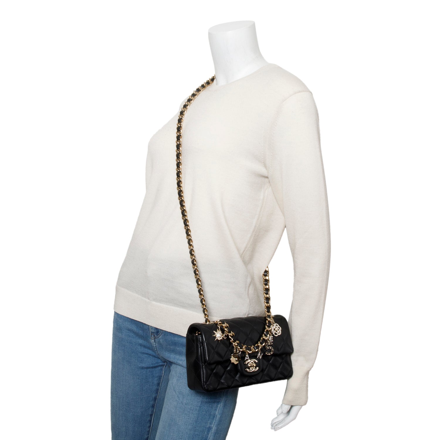 2020 Black Lambskin Mini Coco Charms Rectangular Flap w/ Box & Authenticity Card
