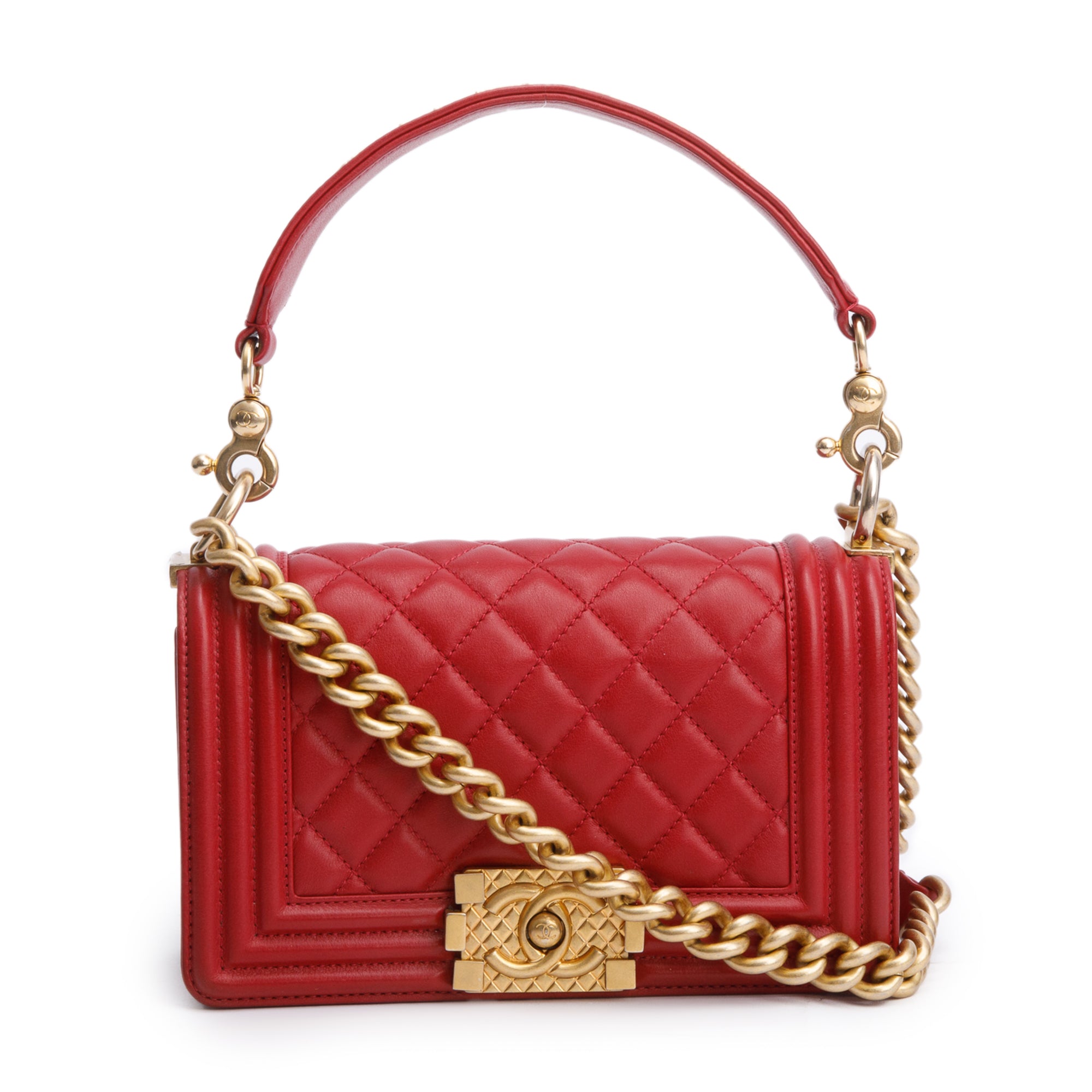 2020 Red Quilted Lambskin Leather Small Logo Top Handle Boy Bag w/ Box, Receipt & Authenticity Card