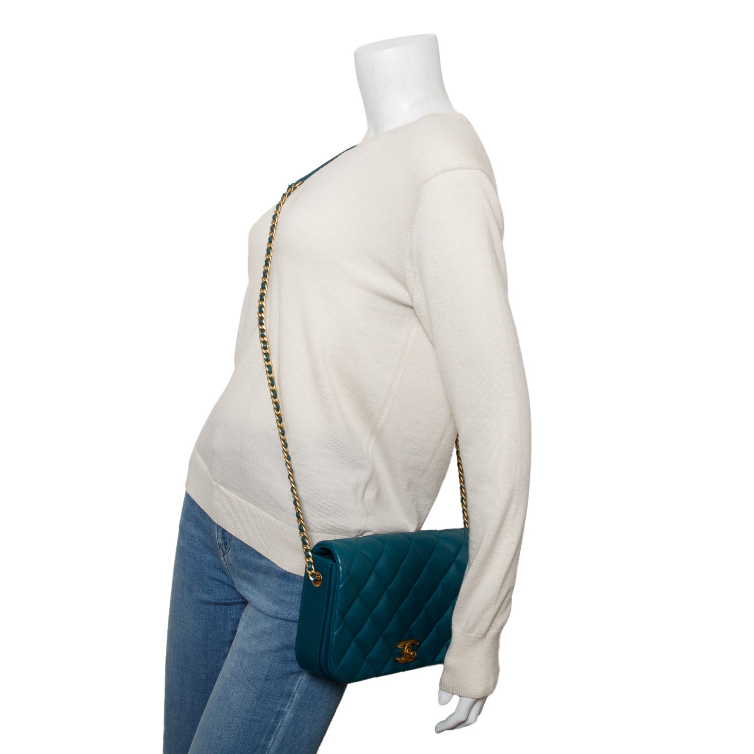 2020 Teal Calfskin Quilted Medium Nailed CC Flap Bag w/ Authenticity Card