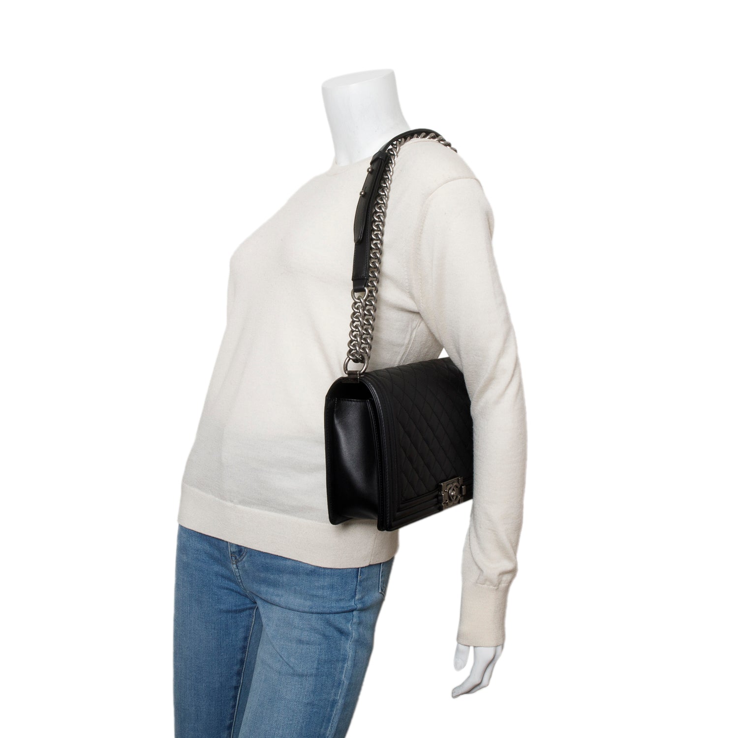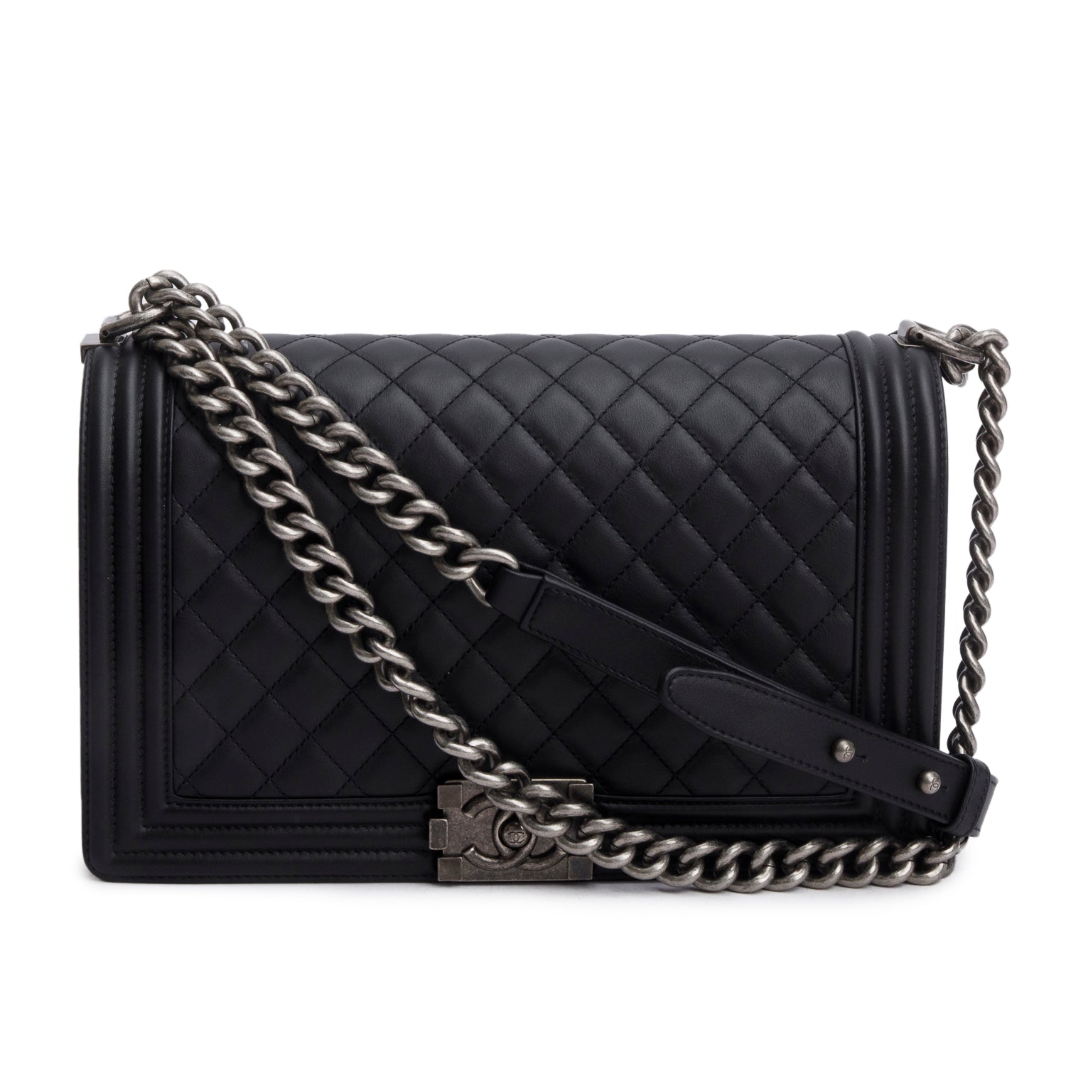 2021 Black Quilted Lambskin Large Boy Bag w/ Box