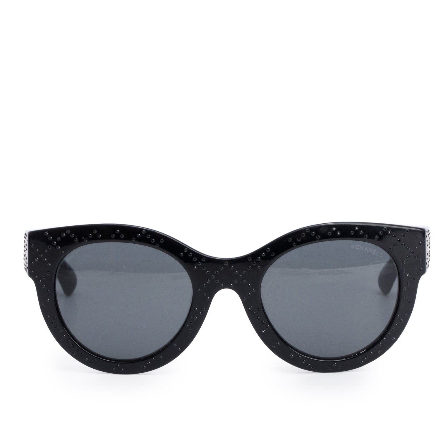 5420-B Black Acetate Crystal CC Sunglasses w/ Case