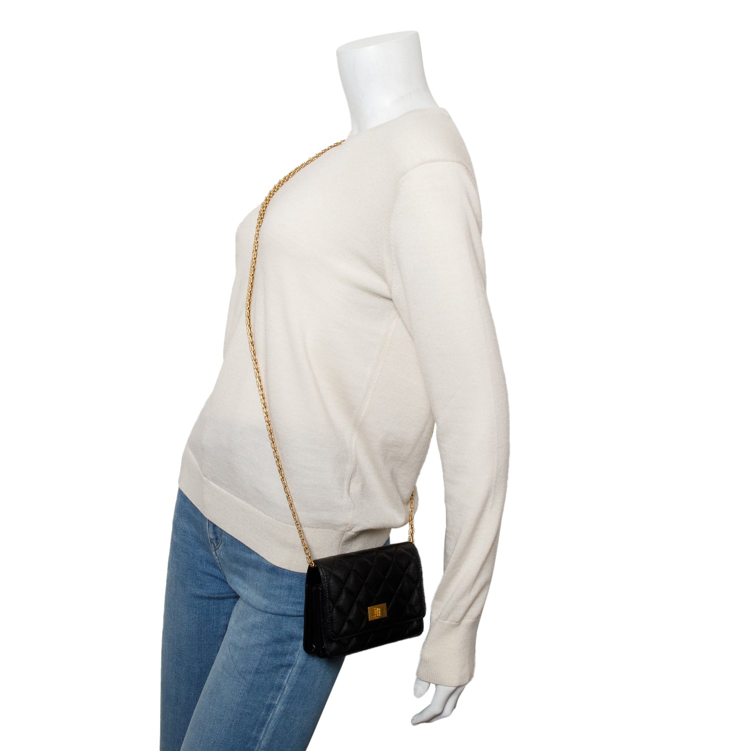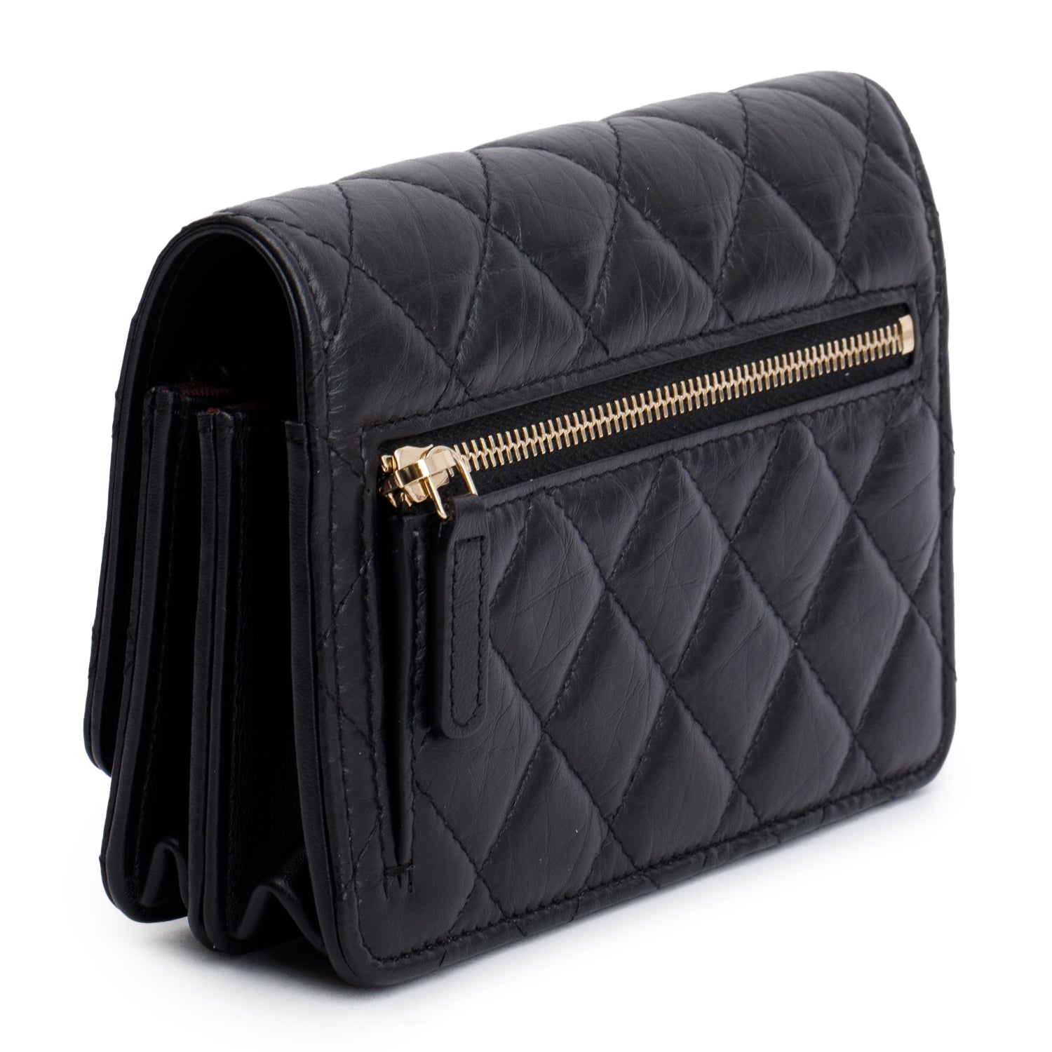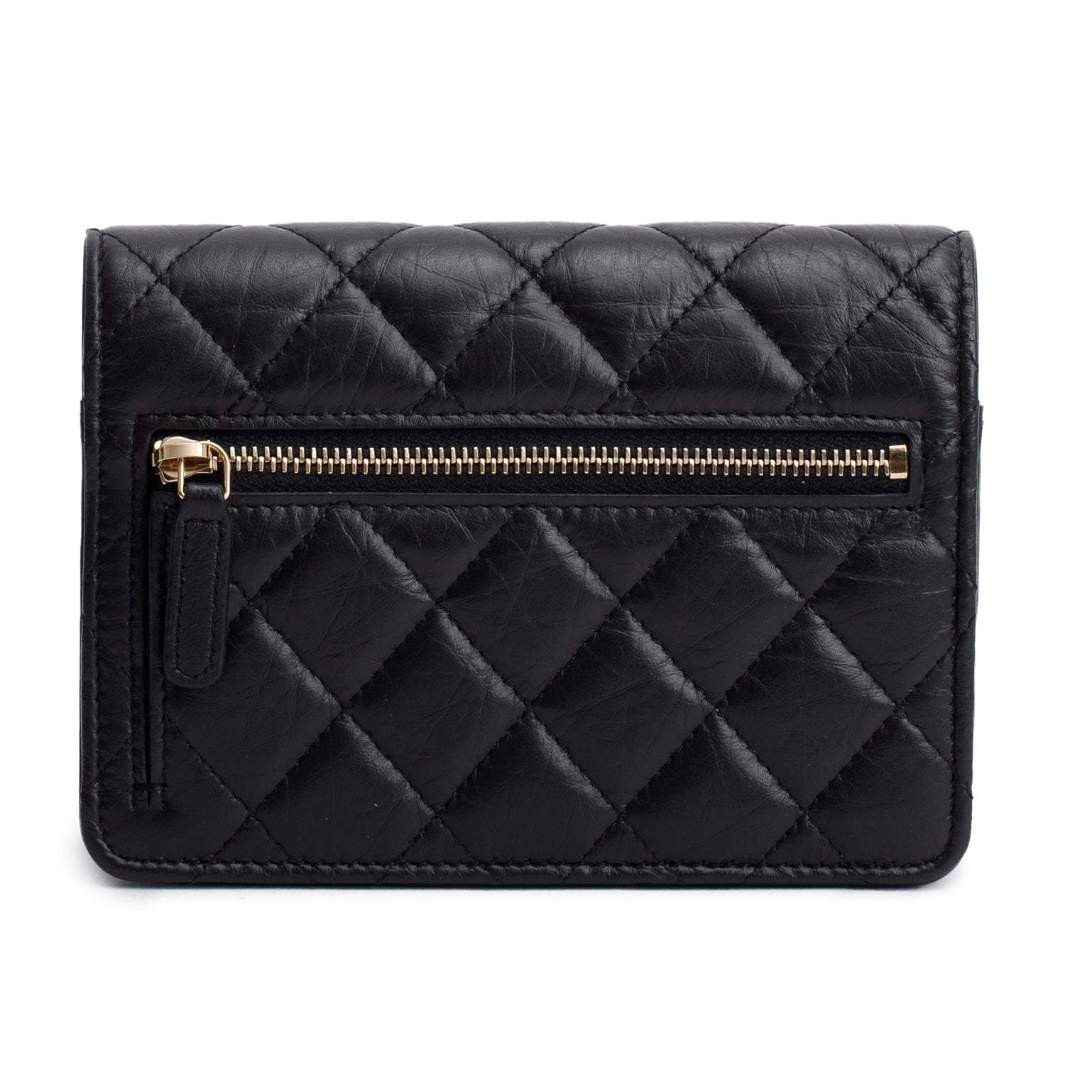 Black Aged Lambskin Quilted Mini Reissue Wallet on Chain