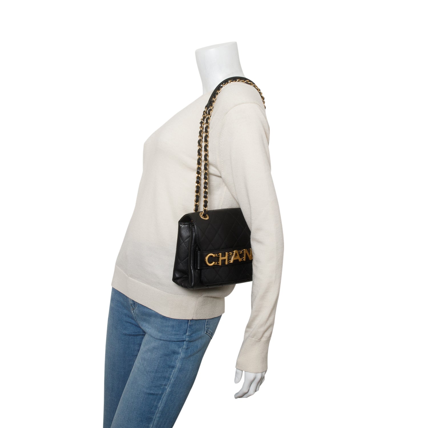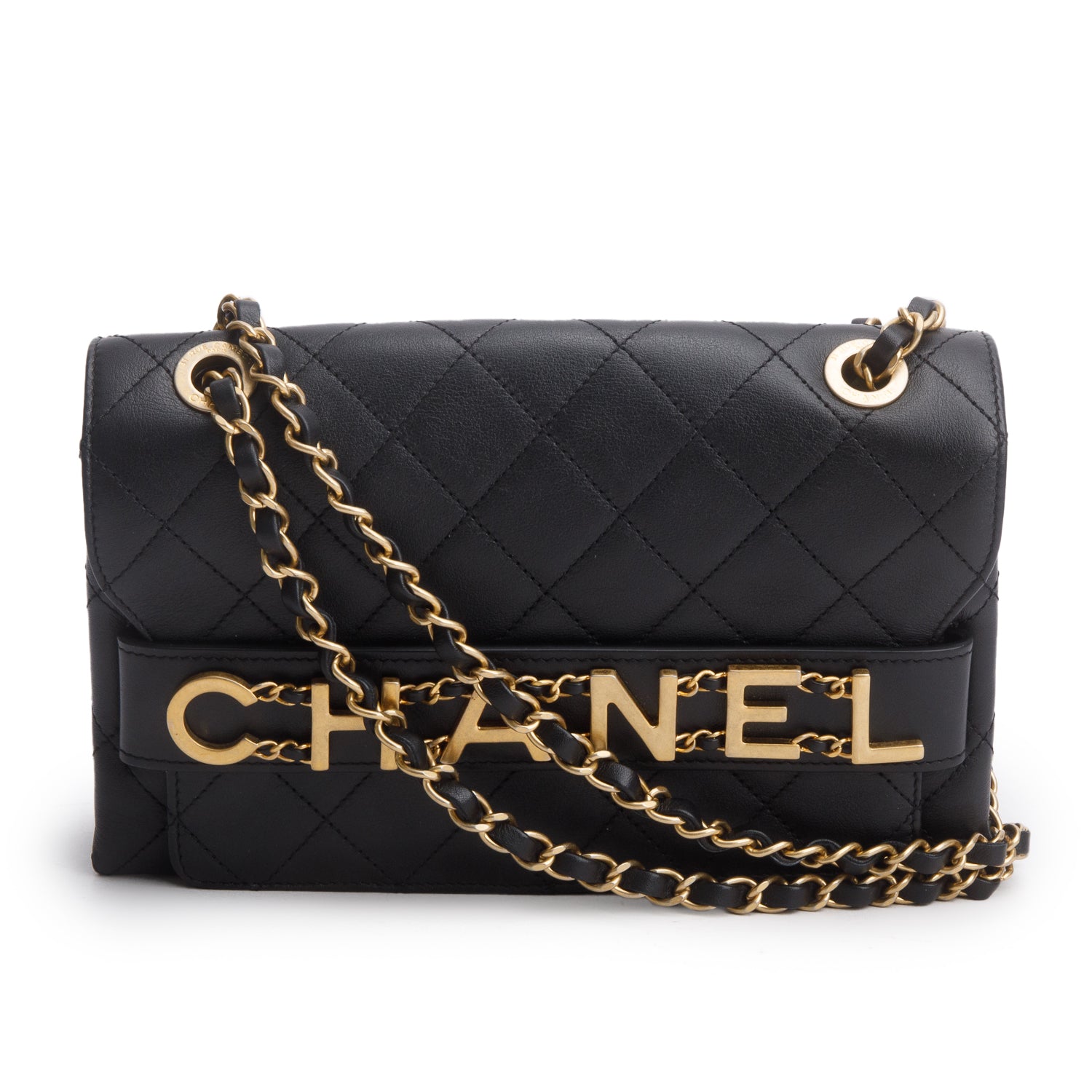 Black Calfskin Quilted Medium Enchained Flap w/ Box & Authenticity Card