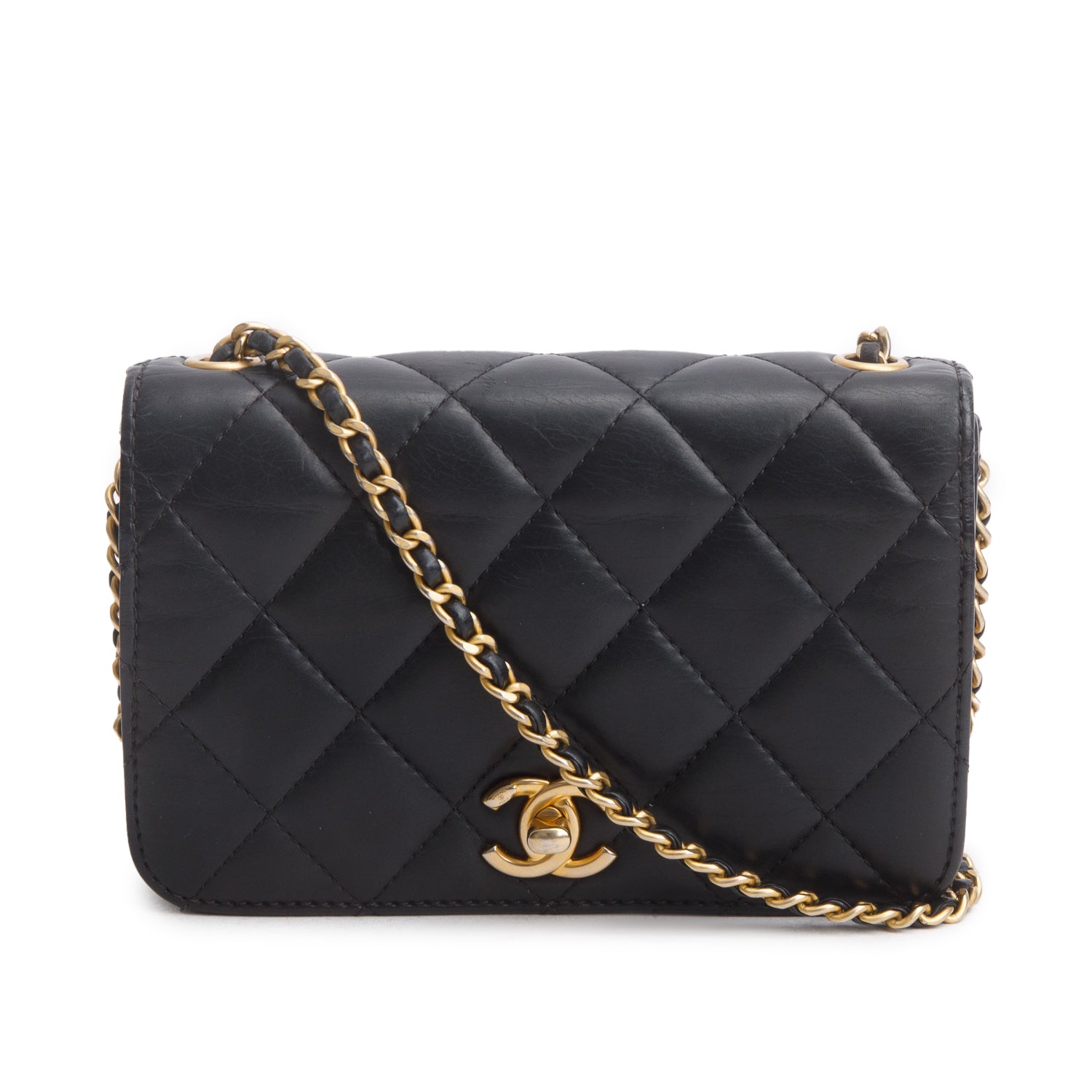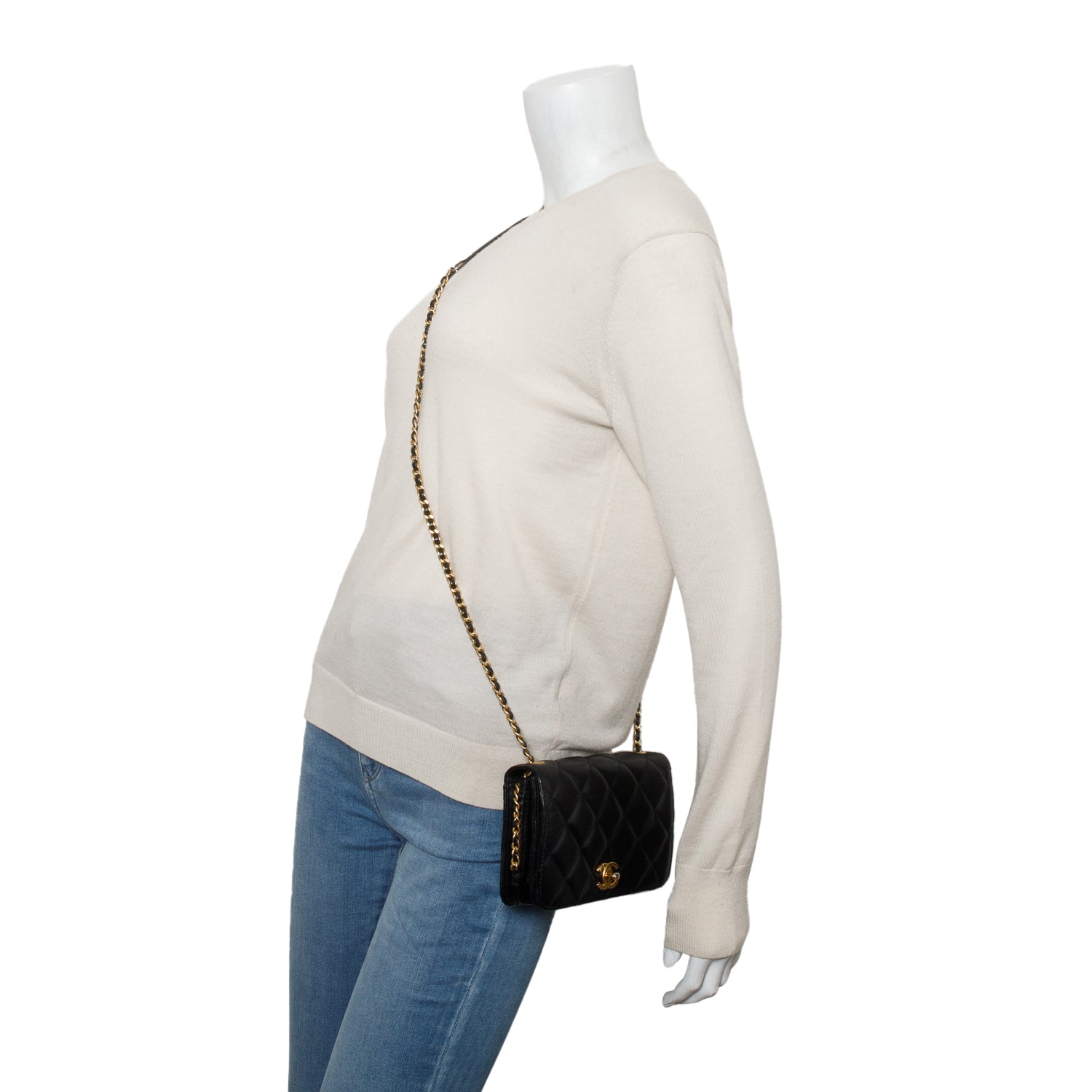 Black Lambskin Quilted CC Side Chain Small Full Flap Bag w/ Box, Authenticity Card & Receipt
