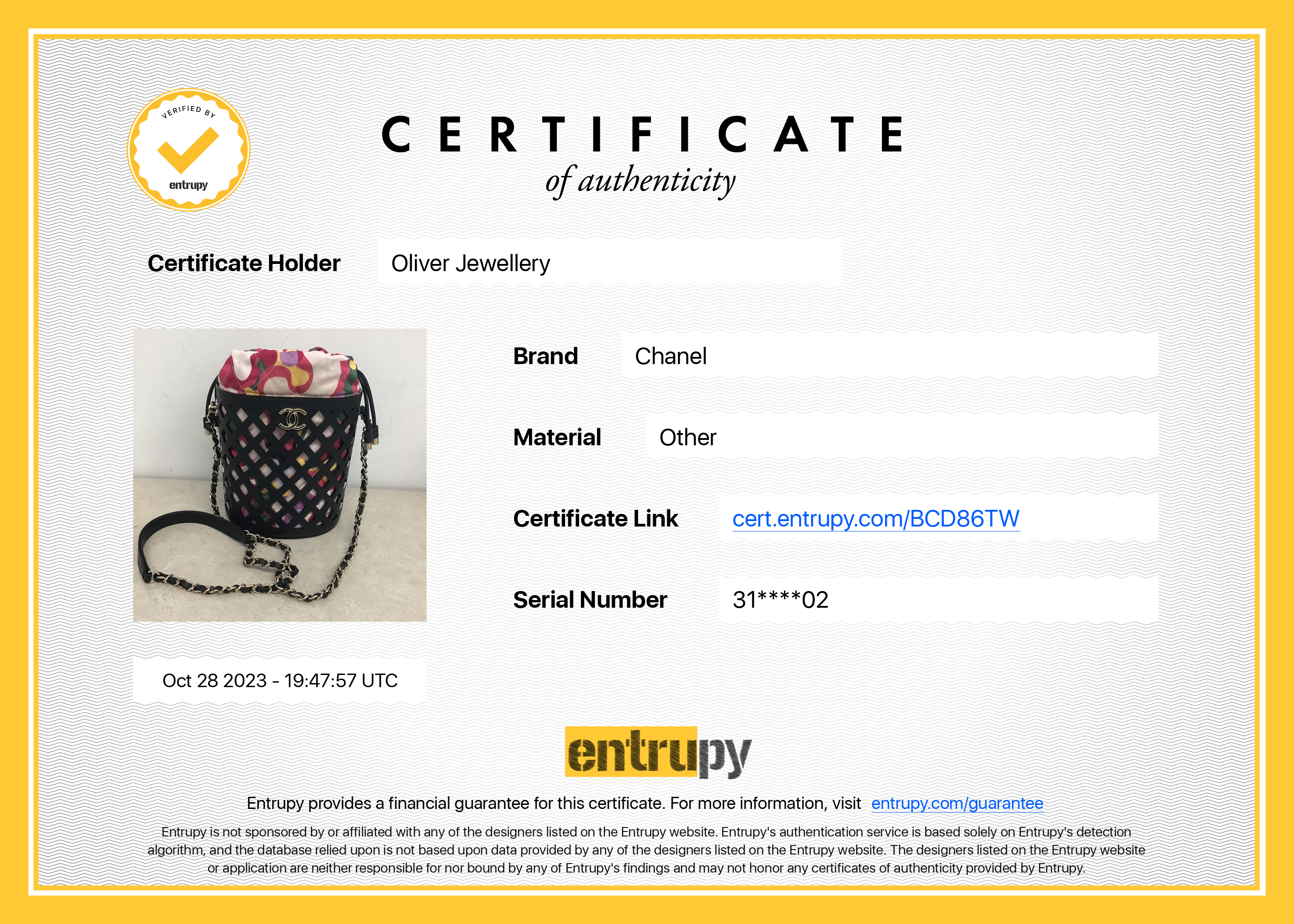 Drawstring Pouch, Dust Bag, Tag, Entrupy Certificate of Authenticity