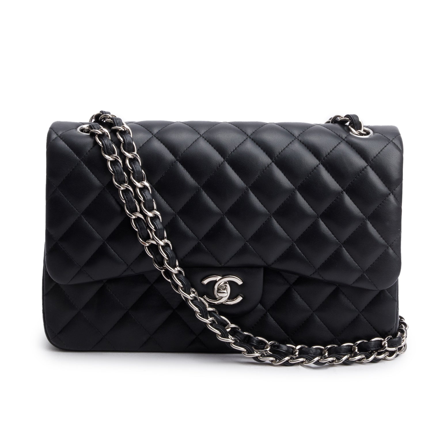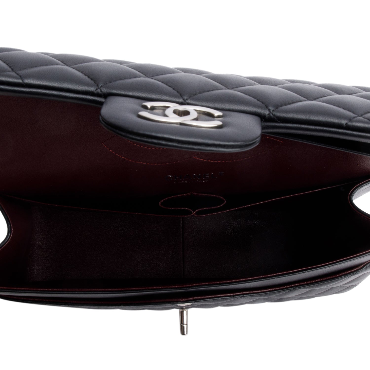 Black Quilted Lambskin Leather Jumbo Double Flap Bag w/ Box & Authenticity Card