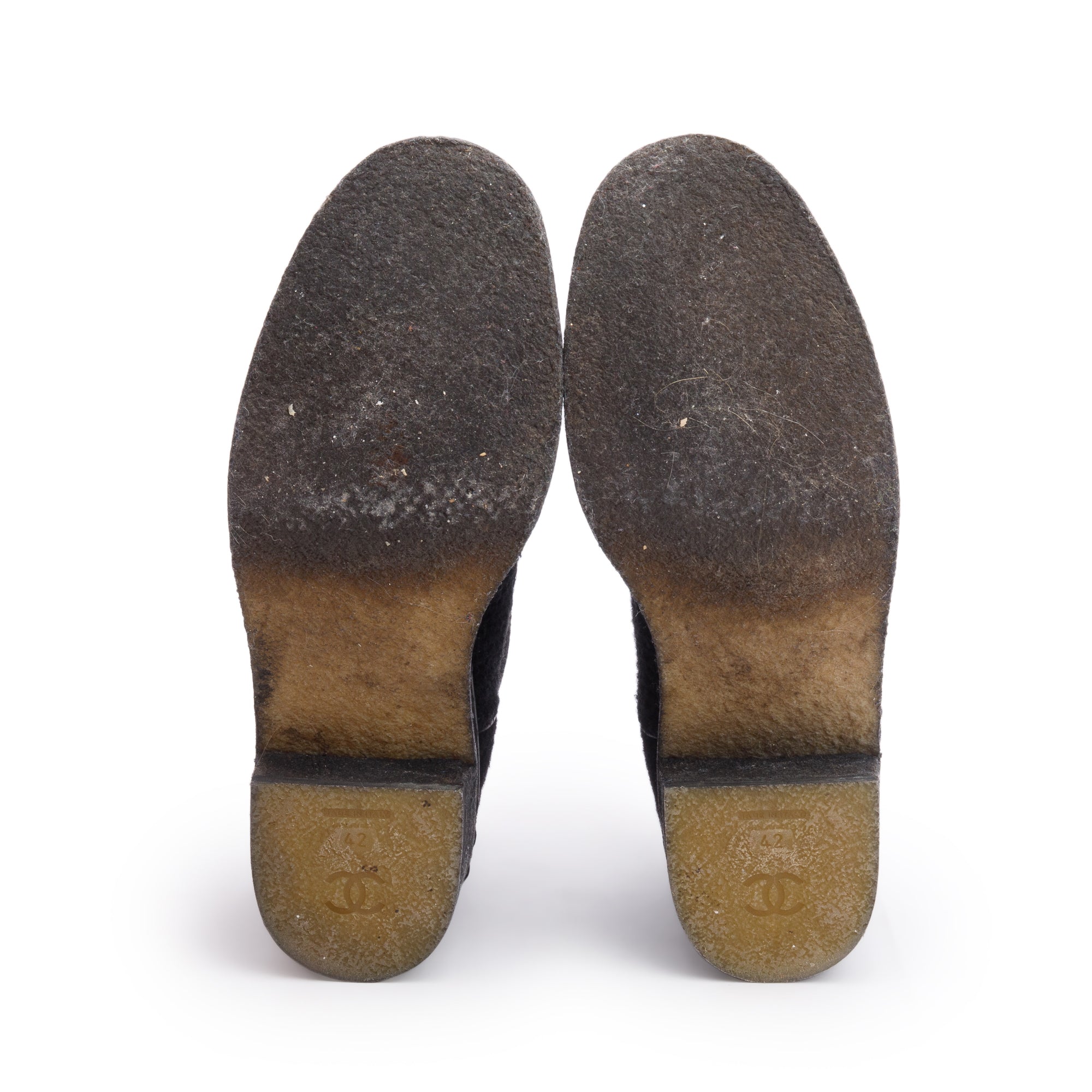 Black Suede Tweed Interlocking CC Logo Combat Boots, Size 42