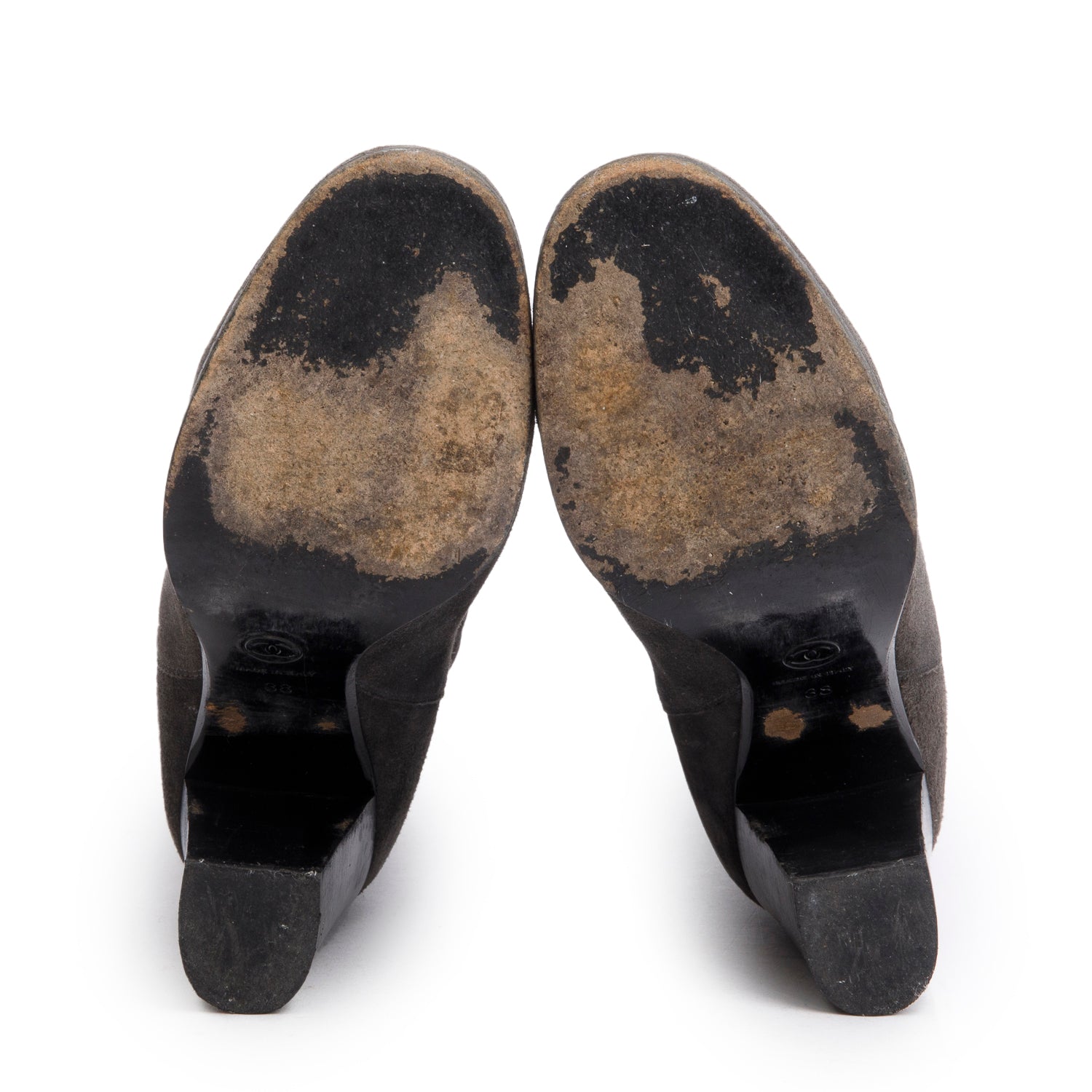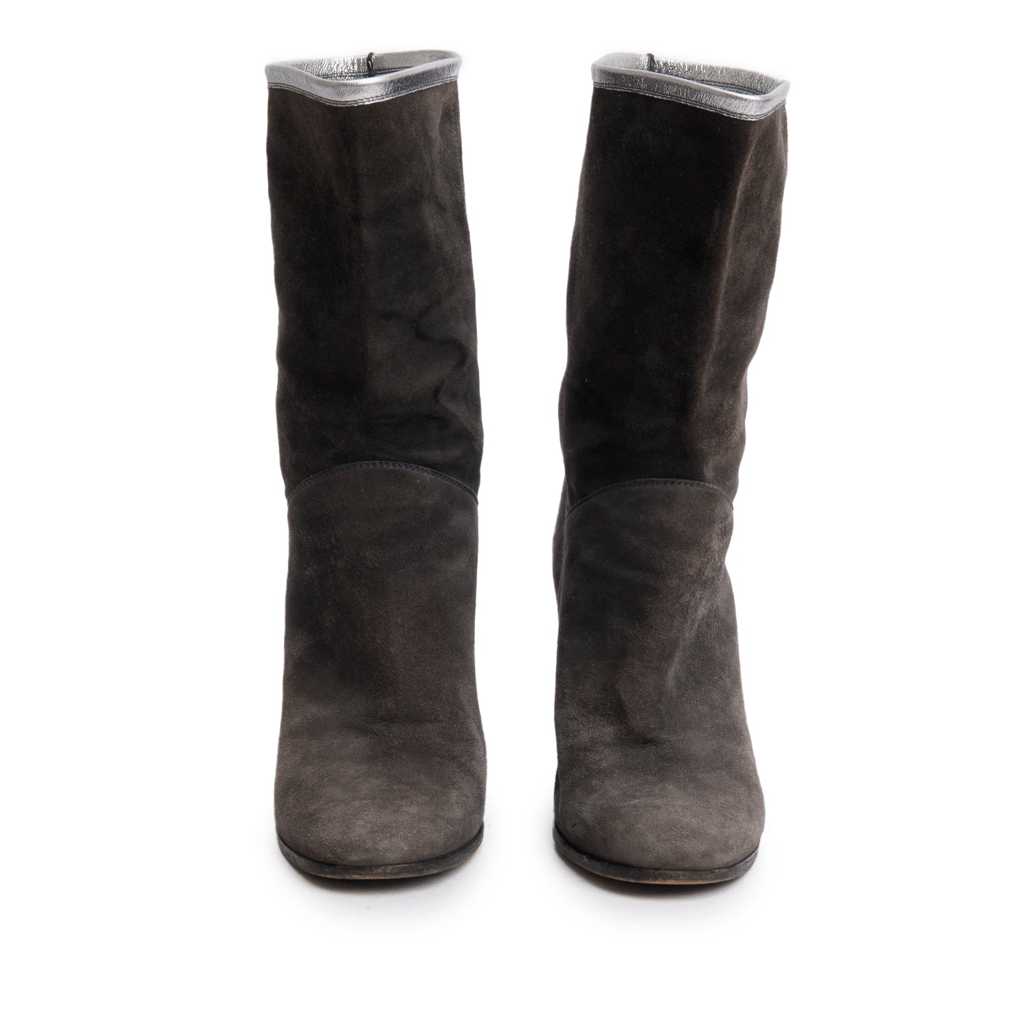Grey Suede Interlocking CC Mid Calf Booties, Size 38 w/ Box