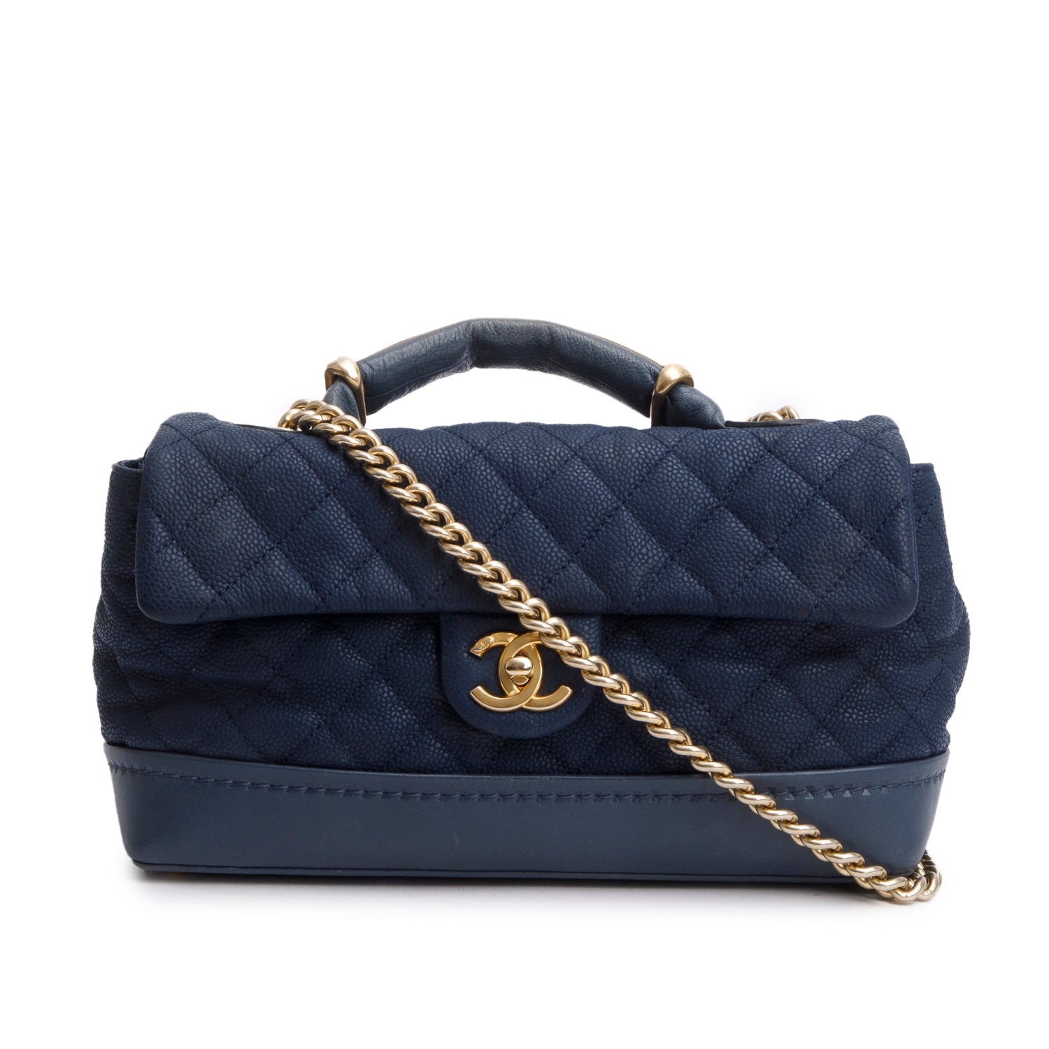 Navy Caviar Quilted Medium Globe Trotter Flap Bag