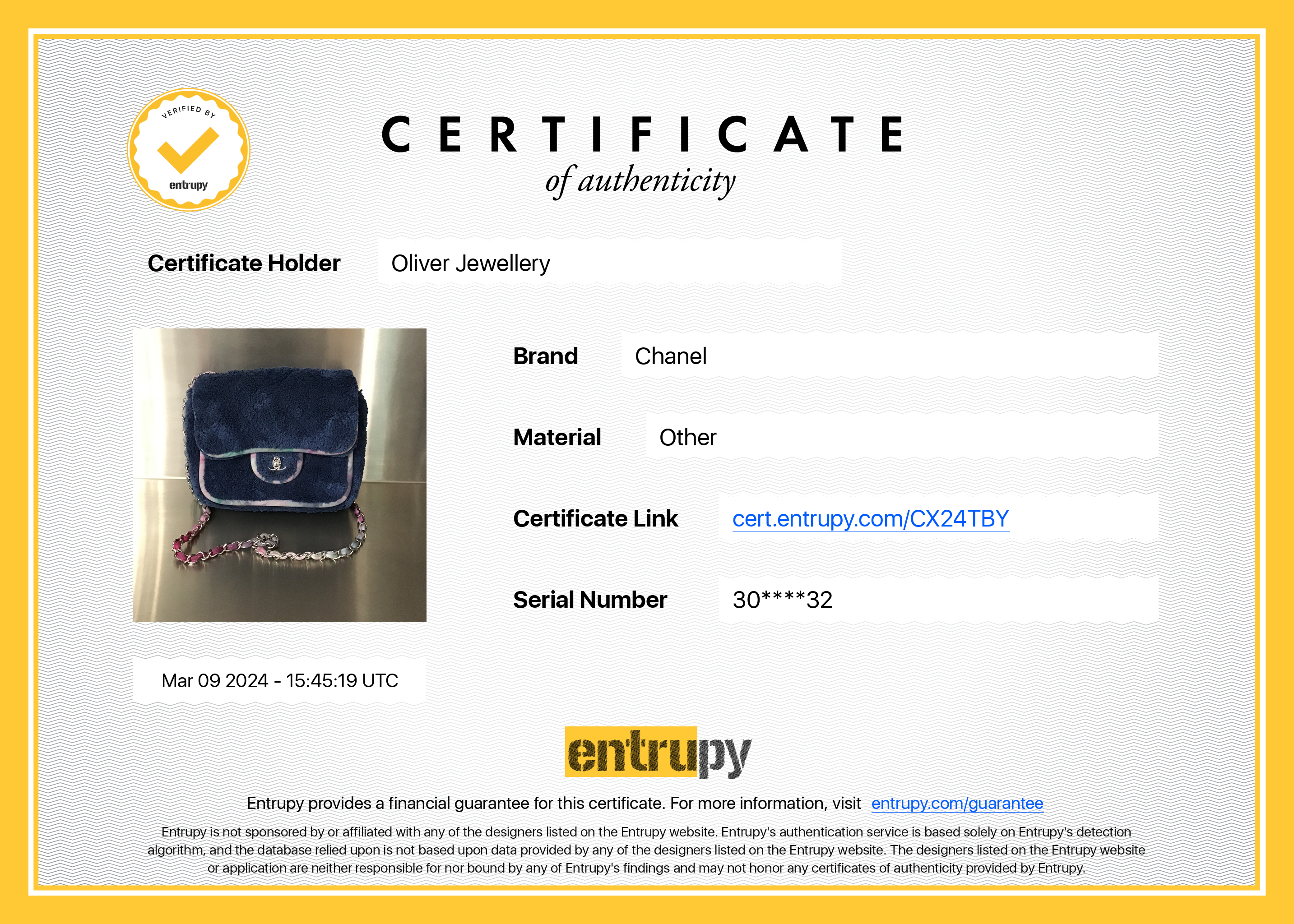 Dust Bag, Authenticity Card, Entrupy Certificate of Authenticity