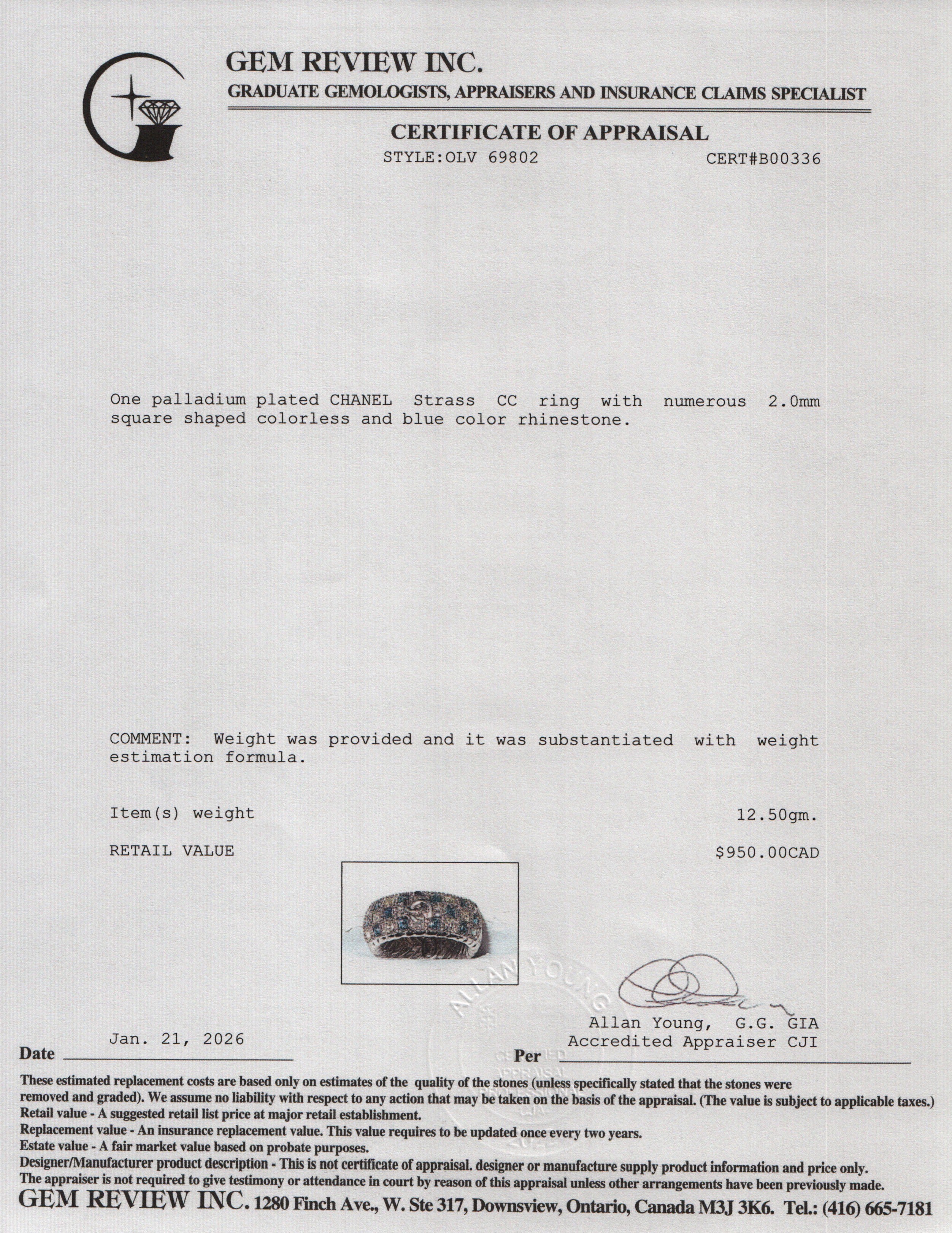 Palladium Plated Strass CC Band Ring, Size 6.75 w/ Box