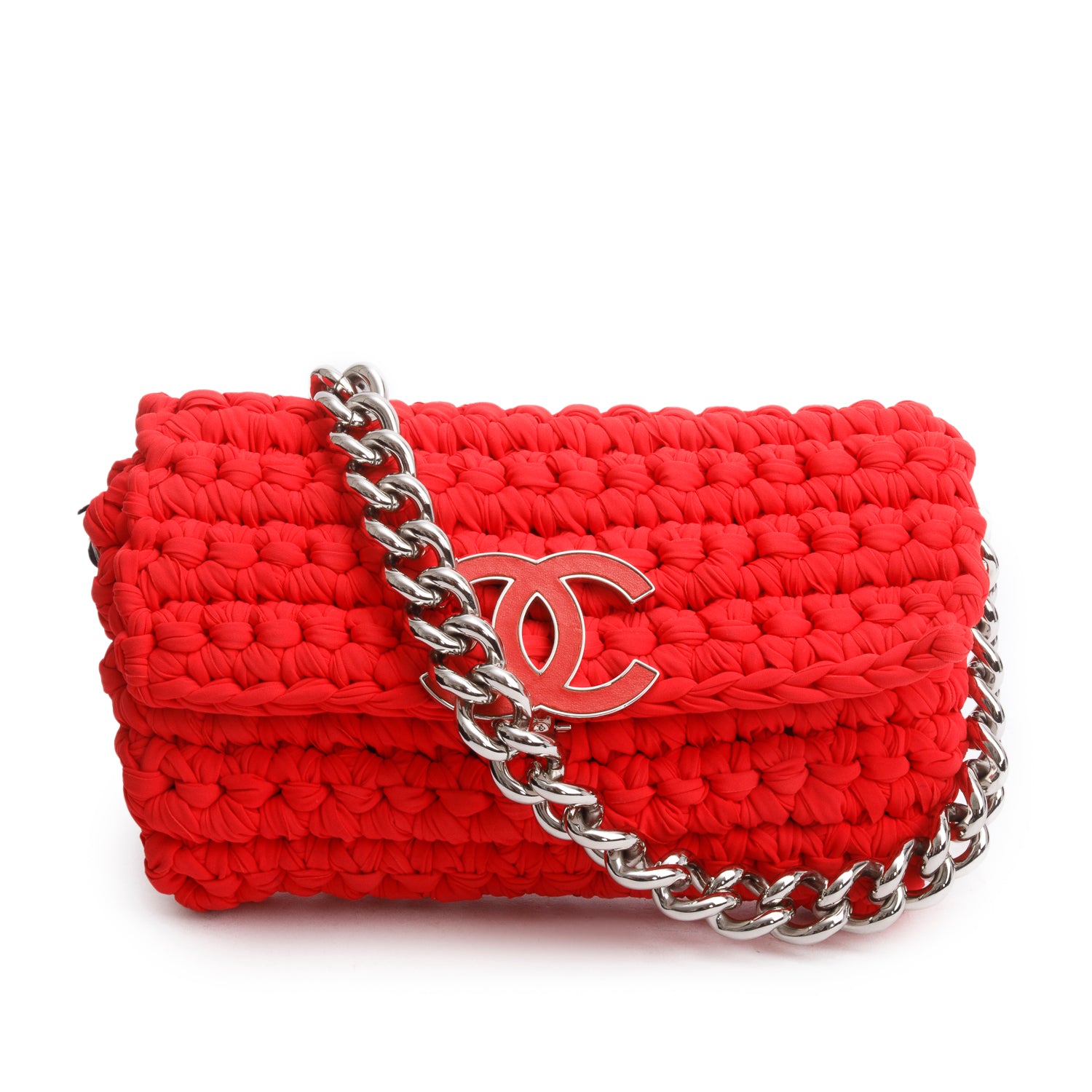 Red Fancy Crochet Single Flap Bag