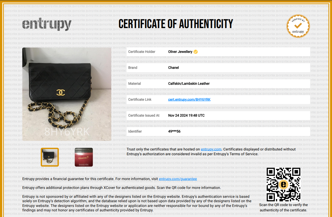 Entrupy Certificate of Authenticity
