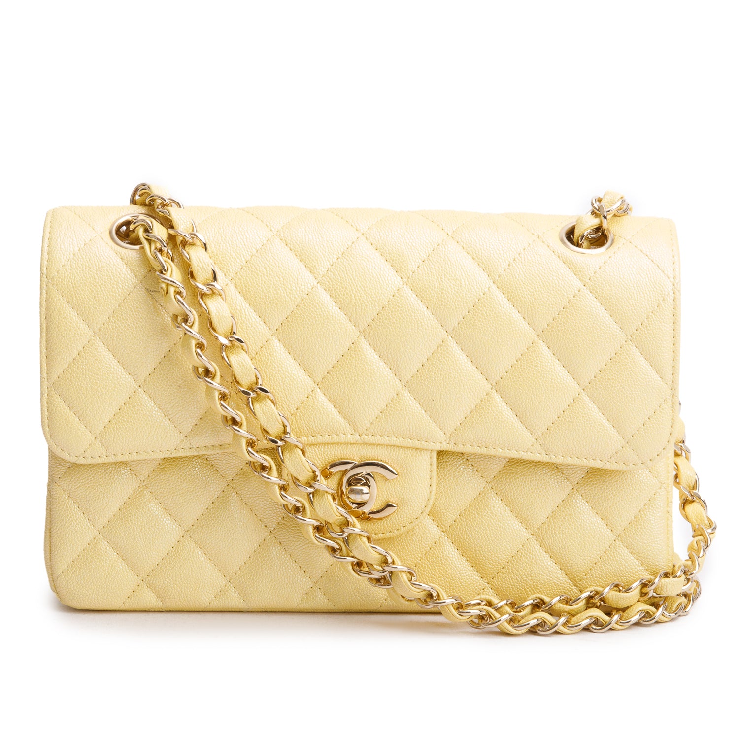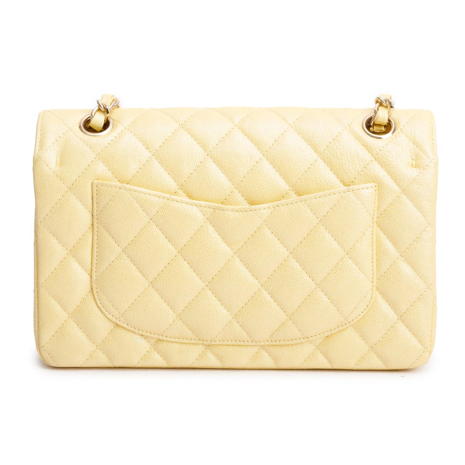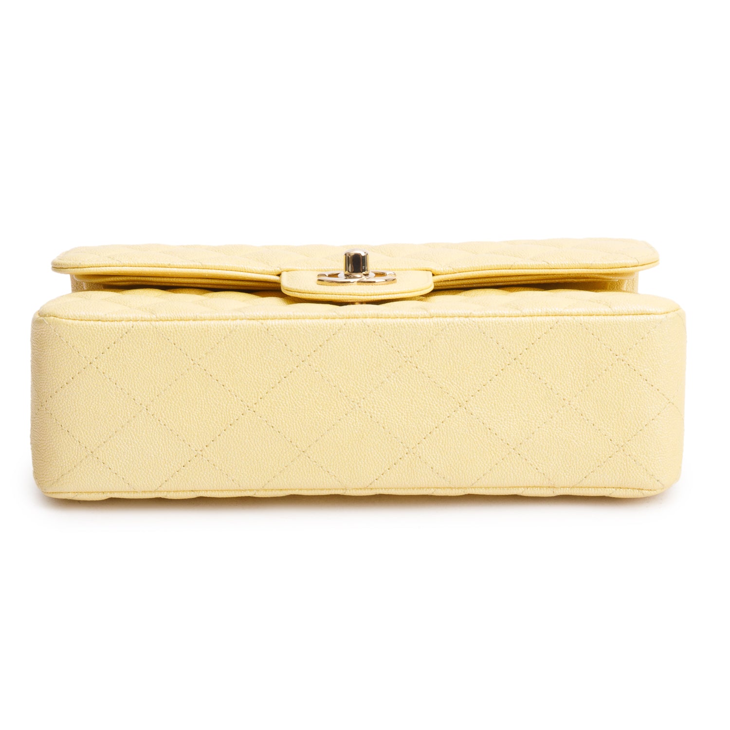 Yellow Iridescent Caviar Quilted Leather Small Double Flap Bag w/ Box